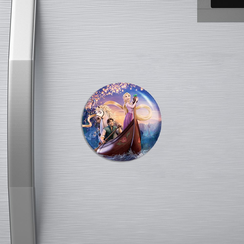 مگنت راپونزل گیسو کمند Rapunzel خندالو با روکش سلفون مات مخملی ضدخش و قطعه پشتی فلزی تولید شده است که آهنربای اتمی بکار برده شده در محصول، بصورت مخفی تعبیه شده ودیده نمی شود. ضمن اینکه گیرایی بسیار بالایی داشته و به هیچ عنوان از روی یخچال نمی افتد.