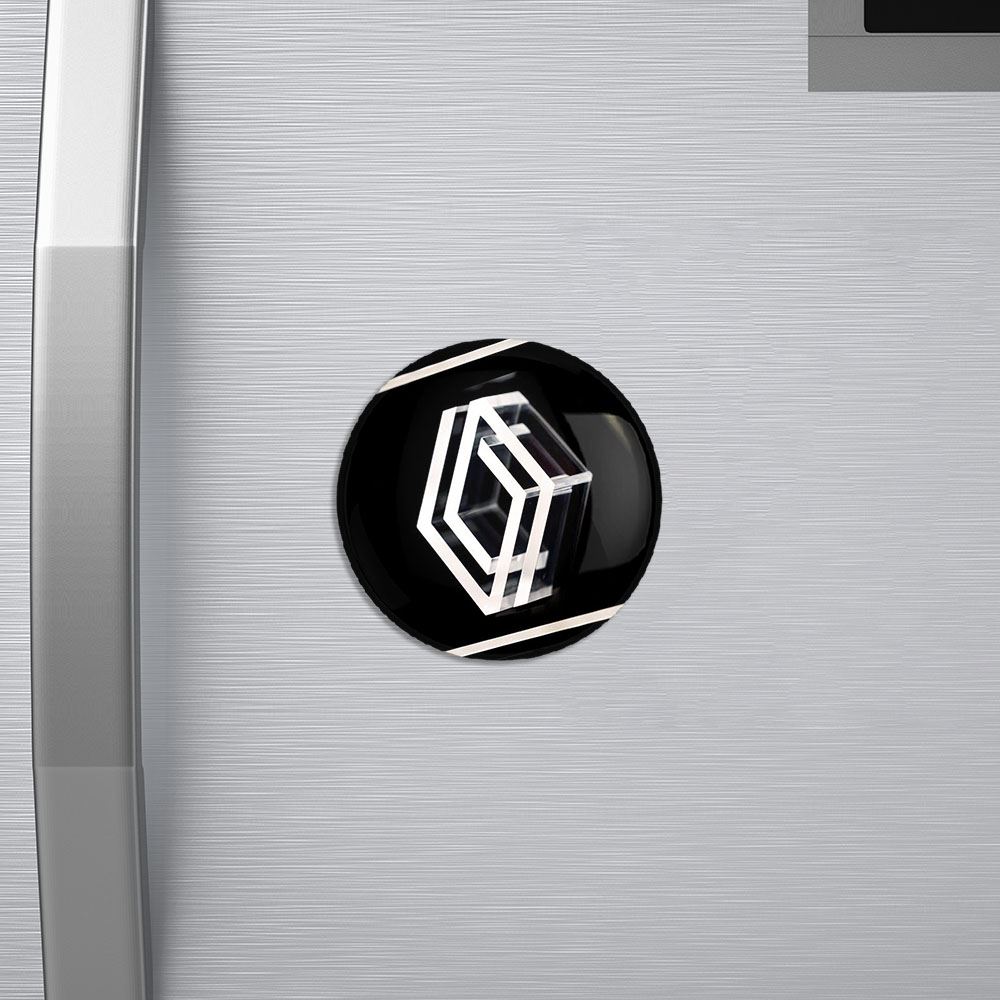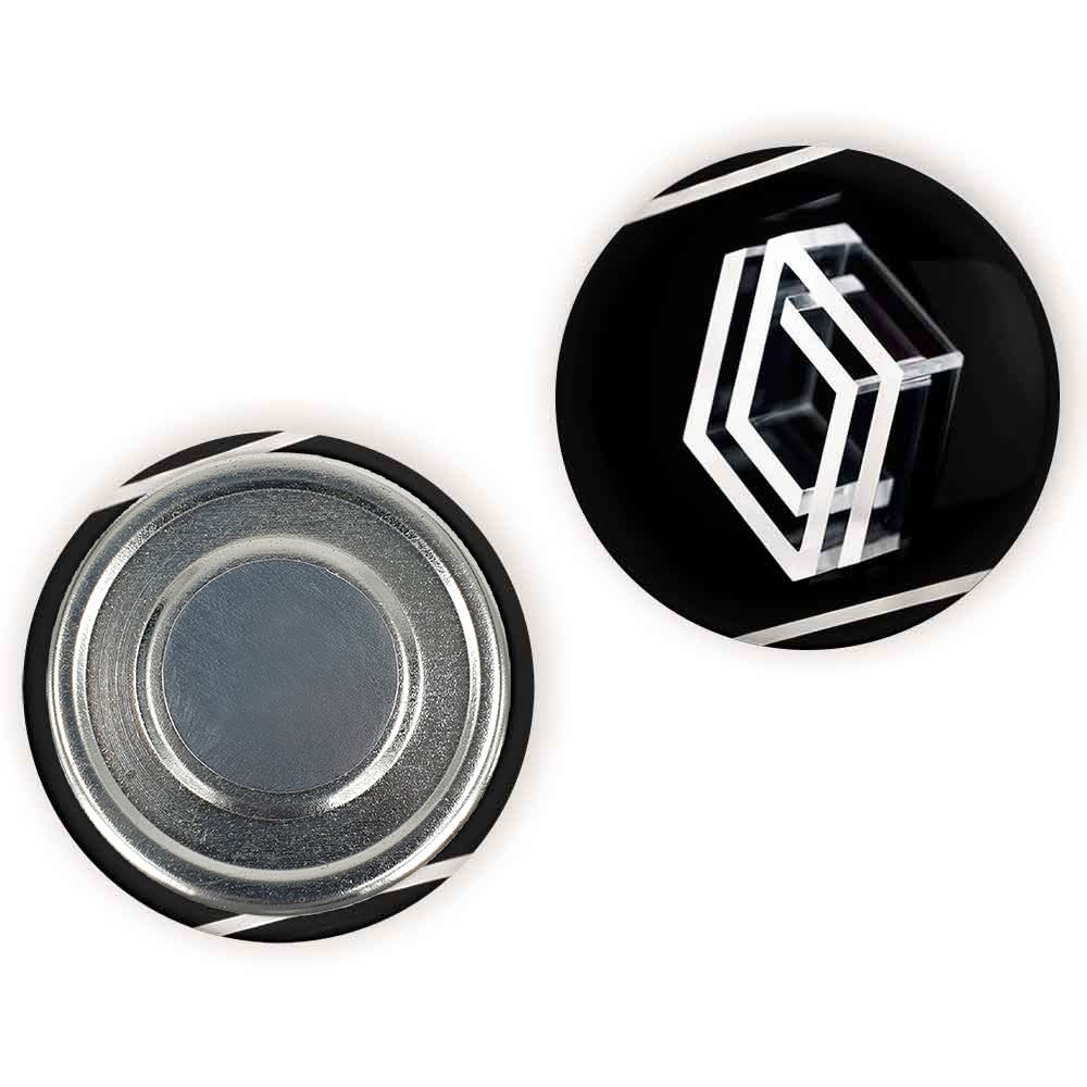 مگنت رنو Renault خندالو با روکش سلفون مات مخملی ضدخش و قطعه پشتی فلزی تولید شده است که آهنربای اتمی بکار برده شده در محصول، بصورت مخفی تعبیه شده ودیده نمی شود. ضمن اینکه گیرایی بسیار بالایی داشته و به هیچ عنوان از روی یخچال نمی افتد.