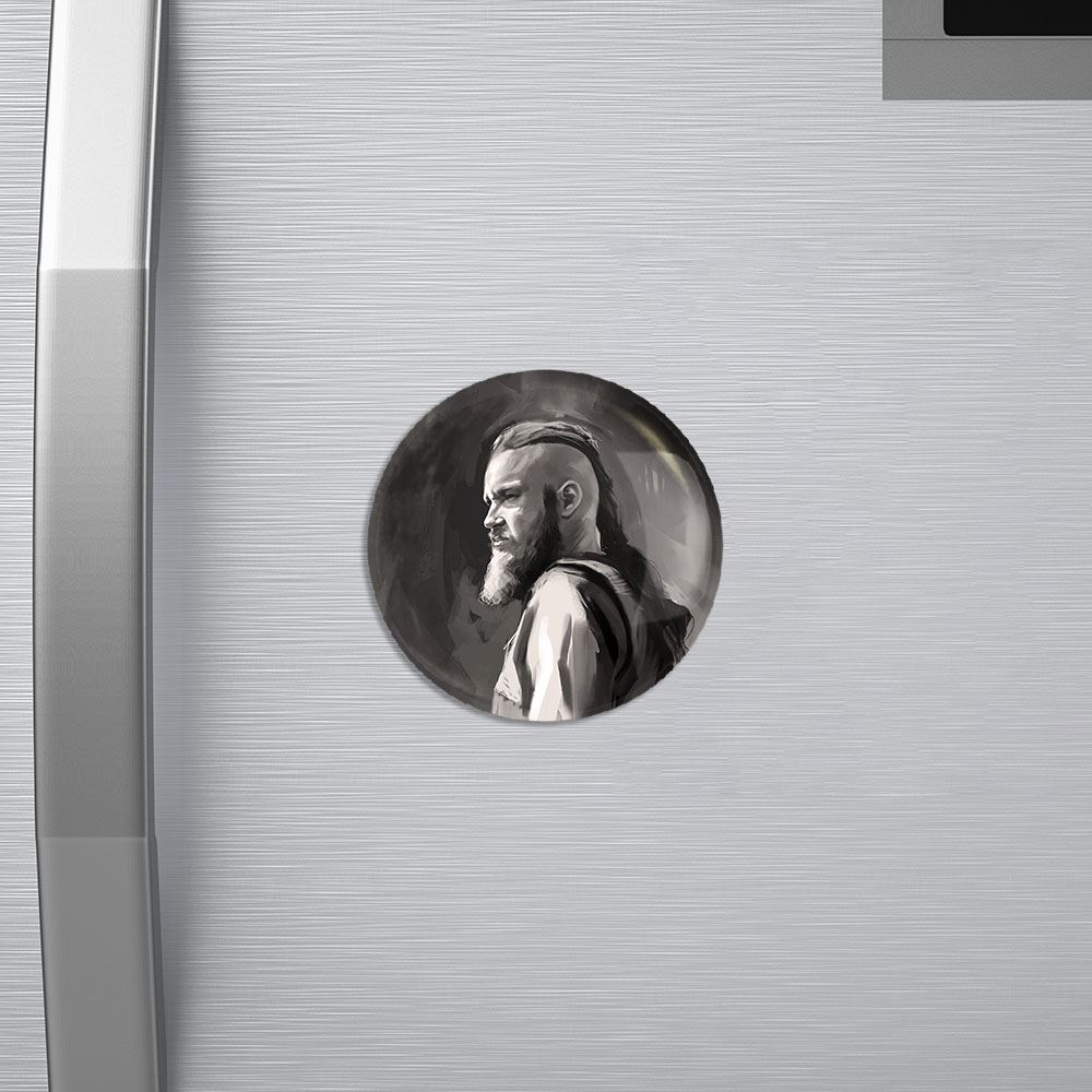 مگنت رگنار سریال وایکینگ ها Vikings خندالو با روکش سلفون مات مخملی ضدخش و قطعه پشتی فلزی تولید شده است که آهنربای اتمی بکار برده شده در محصول، بصورت مخفی تعبیه شده ودیده نمی شود. ضمن اینکه گیرایی بسیار بالایی داشته و به هیچ عنوان از روی یخچال نمی افتد.