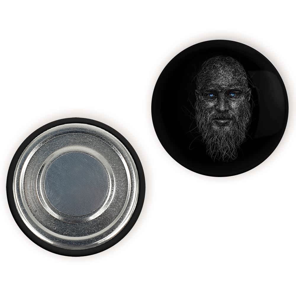 مگنت رگنار سریال وایکینگ ها Vikings خندالو با روکش سلفون مات مخملی ضدخش و قطعه پشتی فلزی تولید شده است که آهنربای اتمی بکار برده شده در محصول، بصورت مخفی تعبیه شده ودیده نمی شود. ضمن اینکه گیرایی بسیار بالایی داشته و به هیچ عنوان از روی یخچال نمی افتد.