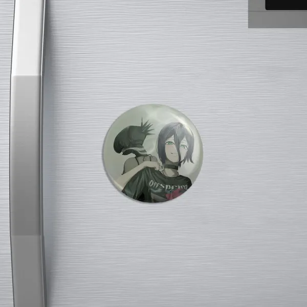 مگنت ریزه انیمه مرد اره ای Chainsaw Man خندالو با روکش سلفون مات مخملی ضدخش و قطعه پشتی فلزی تولید شده است که آهنربای اتمی بکار برده شده در محصول، بصورت مخفی تعبیه شده ودیده نمی شود. ضمن اینکه گیرایی بسیار بالایی داشته و به هیچ عنوان از روی یخچال نمی افتد.