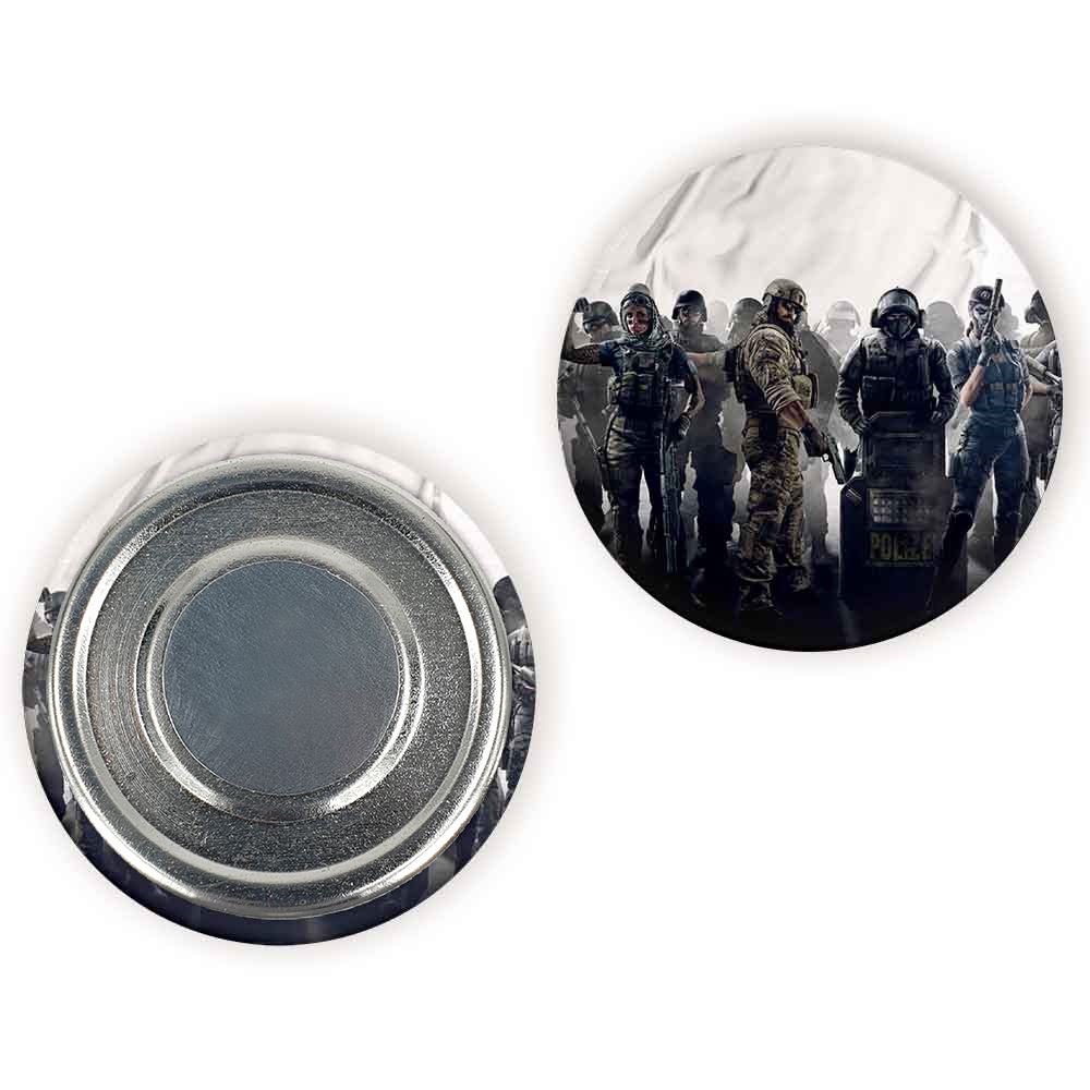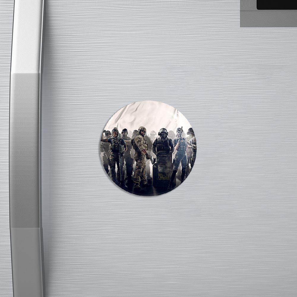 مگنت رینبو سیکس Rainbow Six خندالو با روکش سلفون مات مخملی ضدخش و قطعه پشتی فلزی تولید شده است که آهنربای اتمی بکار برده شده در محصول، بصورت مخفی تعبیه شده ودیده نمی شود. ضمن اینکه گیرایی بسیار بالایی داشته و به هیچ عنوان از روی یخچال نمی افتد.