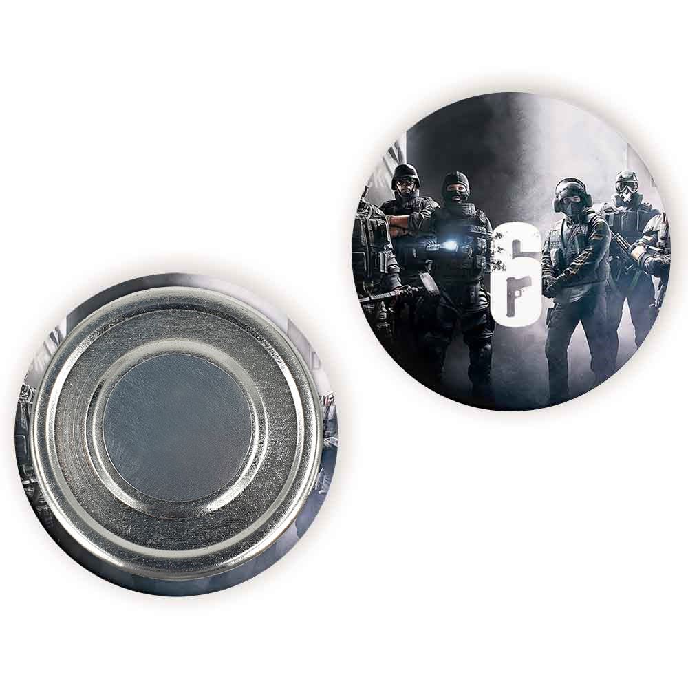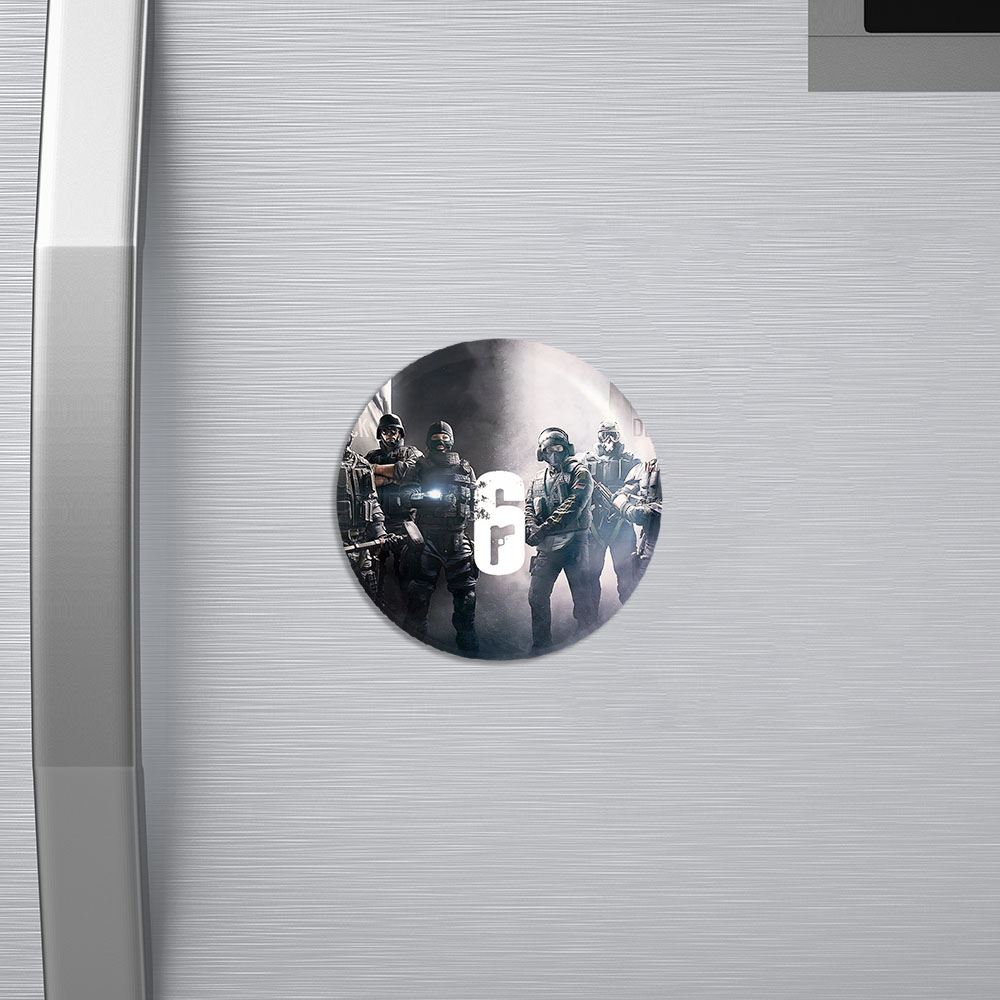 مگنت رینبو سیکس Rainbow Six خندالو با روکش سلفون مات مخملی ضدخش و قطعه پشتی فلزی تولید شده است که آهنربای اتمی بکار برده شده در محصول، بصورت مخفی تعبیه شده ودیده نمی شود. ضمن اینکه گیرایی بسیار بالایی داشته و به هیچ عنوان از روی یخچال نمی افتد.