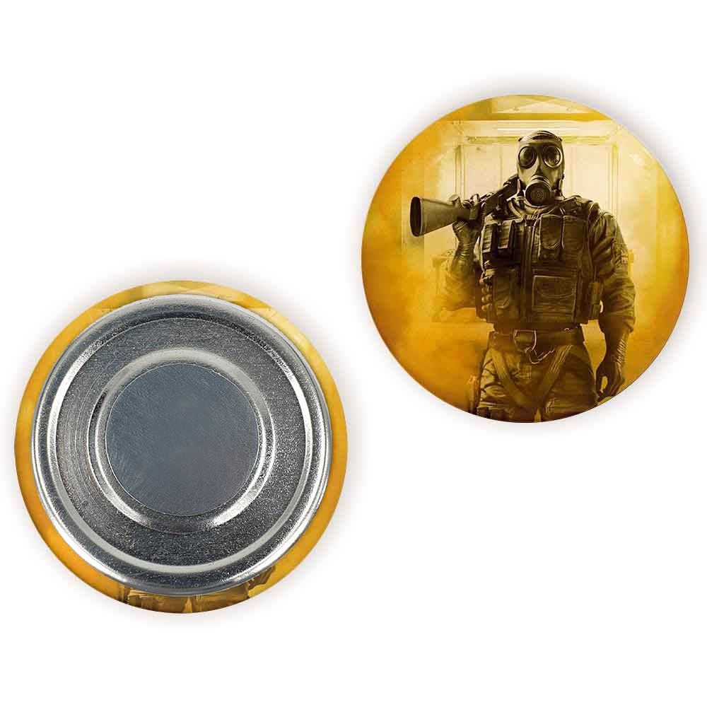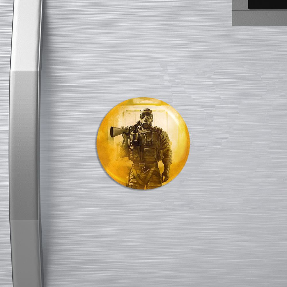 مگنت رینبو سیکس Rainbow Six خندالو با روکش سلفون مات مخملی ضدخش و قطعه پشتی فلزی تولید شده است که آهنربای اتمی بکار برده شده در محصول، بصورت مخفی تعبیه شده ودیده نمی شود. ضمن اینکه گیرایی بسیار بالایی داشته و به هیچ عنوان از روی یخچال نمی افتد.