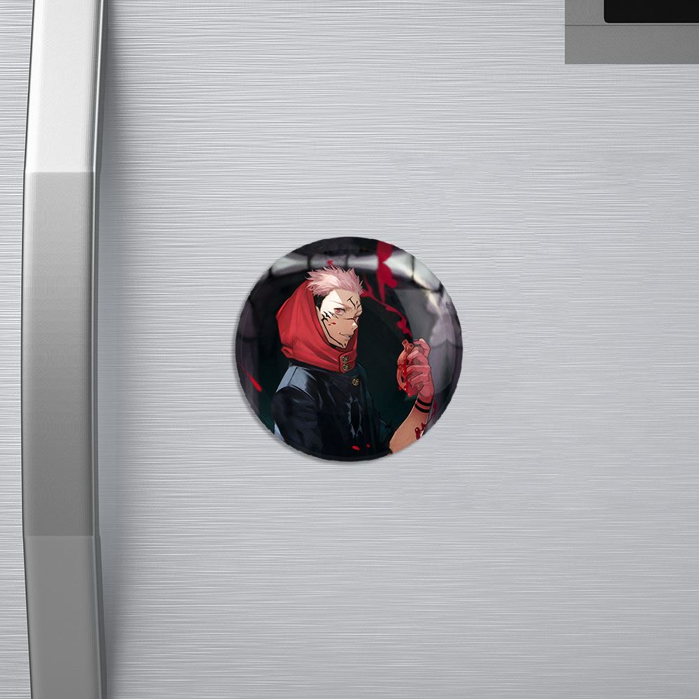 مگنت ریومن سوکونا انیمه جوجوتسو کایزن خندالو با روکش سلفون مات مخملی ضدخش و قطعه پشتی فلزی تولید شده است که آهنربای اتمی بکار برده شده در محصول، بصورت مخفی تعبیه شده ودیده نمی شود. ضمن اینکه گیرایی بسیار بالایی داشته و به هیچ عنوان از روی یخچال نمی افتد.
