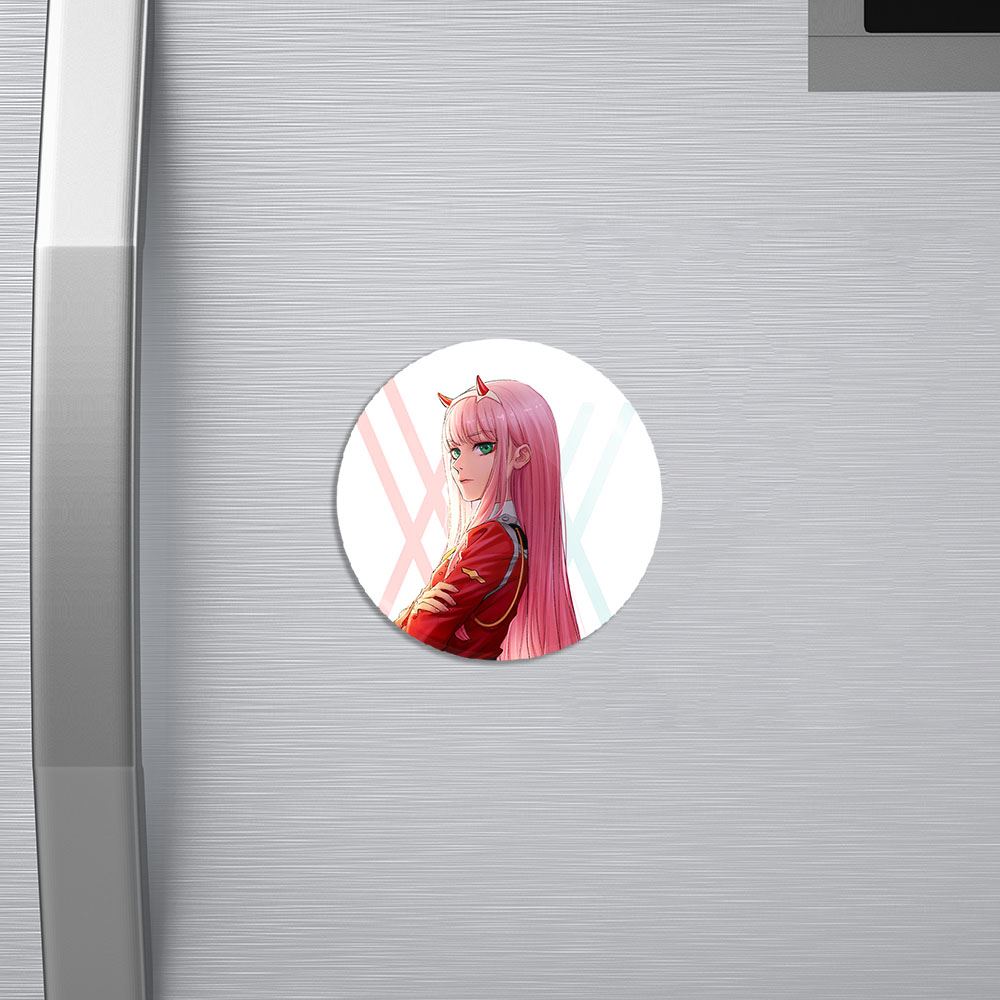 مگنت زیروتو انیمه دارلینگ Darling خندالو با روکش سلفون مات مخملی ضدخش و قطعه پشتی فلزی تولید شده است که آهنربای اتمی بکار برده شده در محصول، بصورت مخفی تعبیه شده ودیده نمی شود. ضمن اینکه گیرایی بسیار بالایی داشته و به هیچ عنوان از روی یخچال نمی افتد.