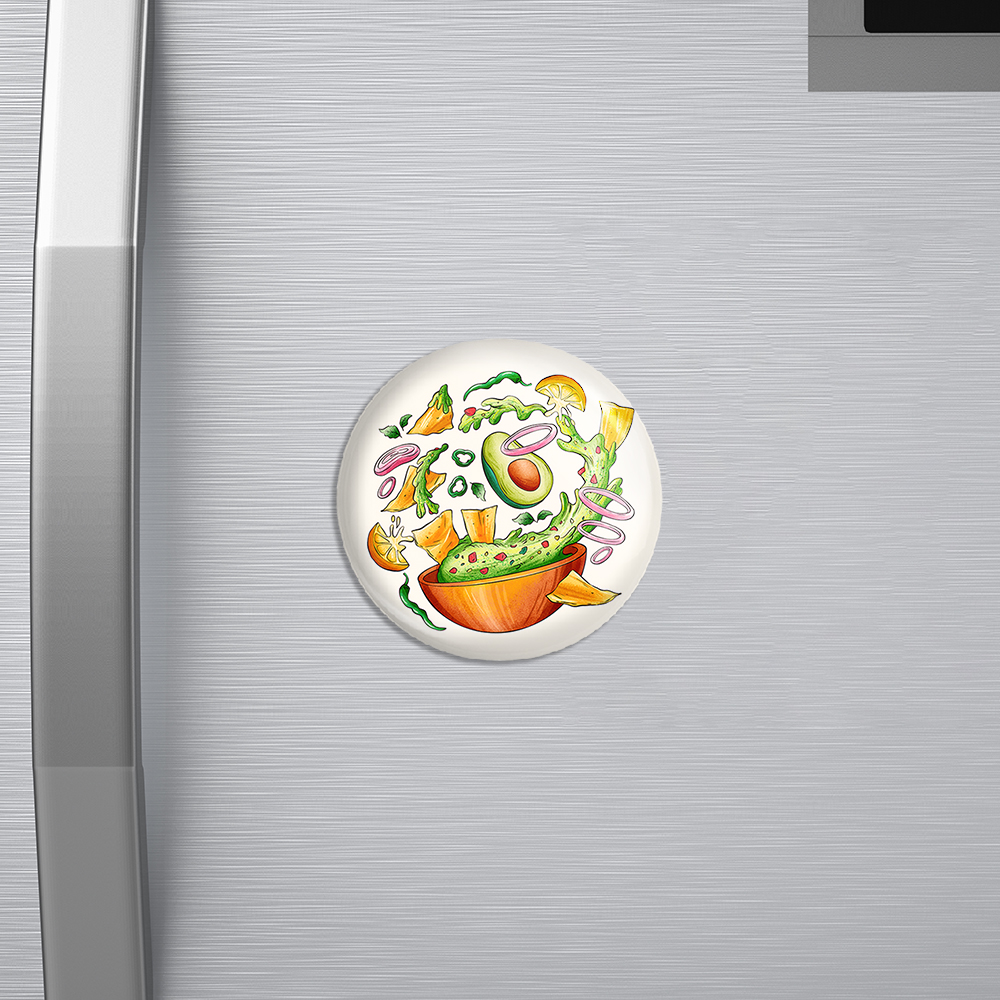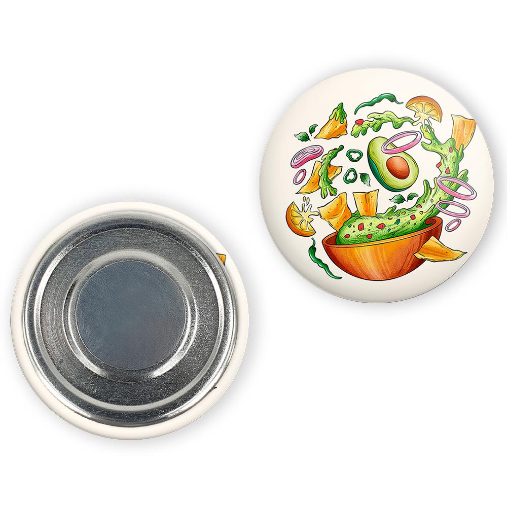 مگنت سالاد  خندالو با روکش سلفون مات مخملی ضدخش و قطعه پشتی فلزی تولید شده است که آهنربای اتمی بکار برده شده در محصول، بصورت مخفی تعبیه شده ودیده نمی شود. ضمن اینکه گیرایی بسیار بالایی داشته و به هیچ عنوان از روی یخچال نمی افتد.