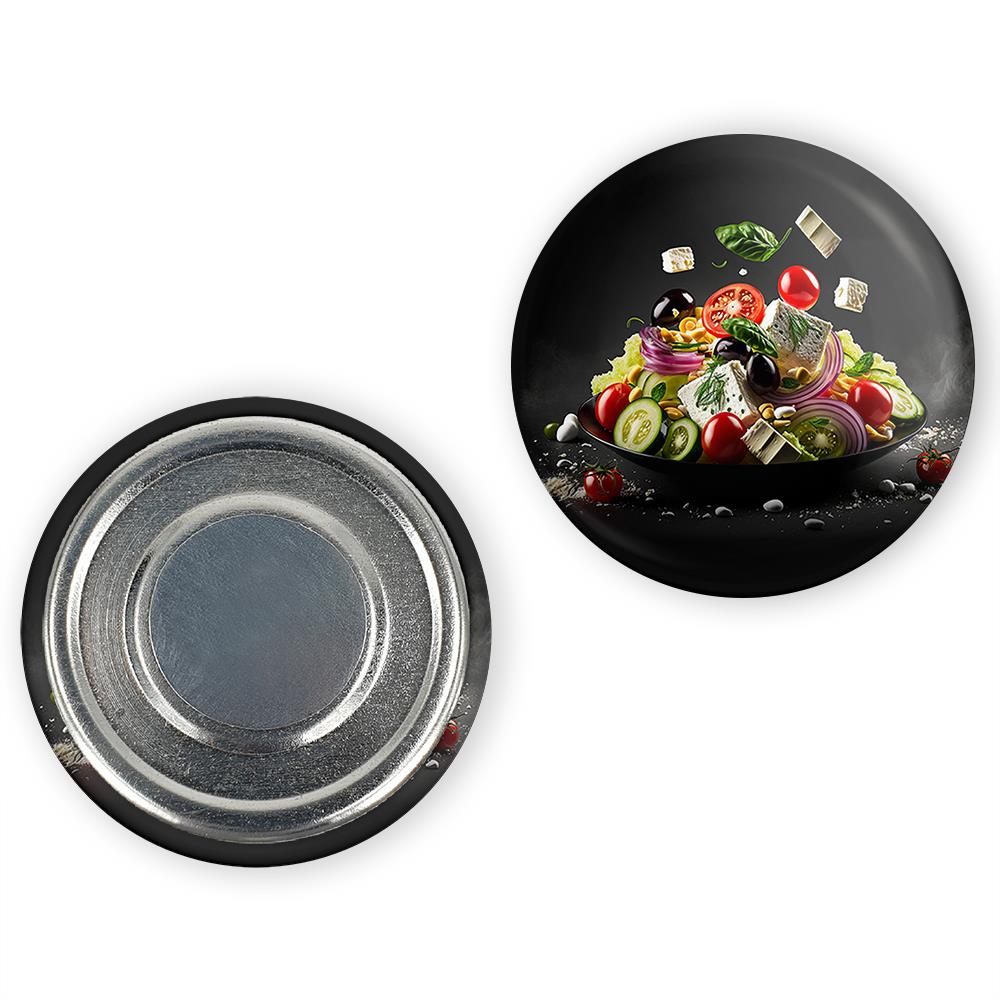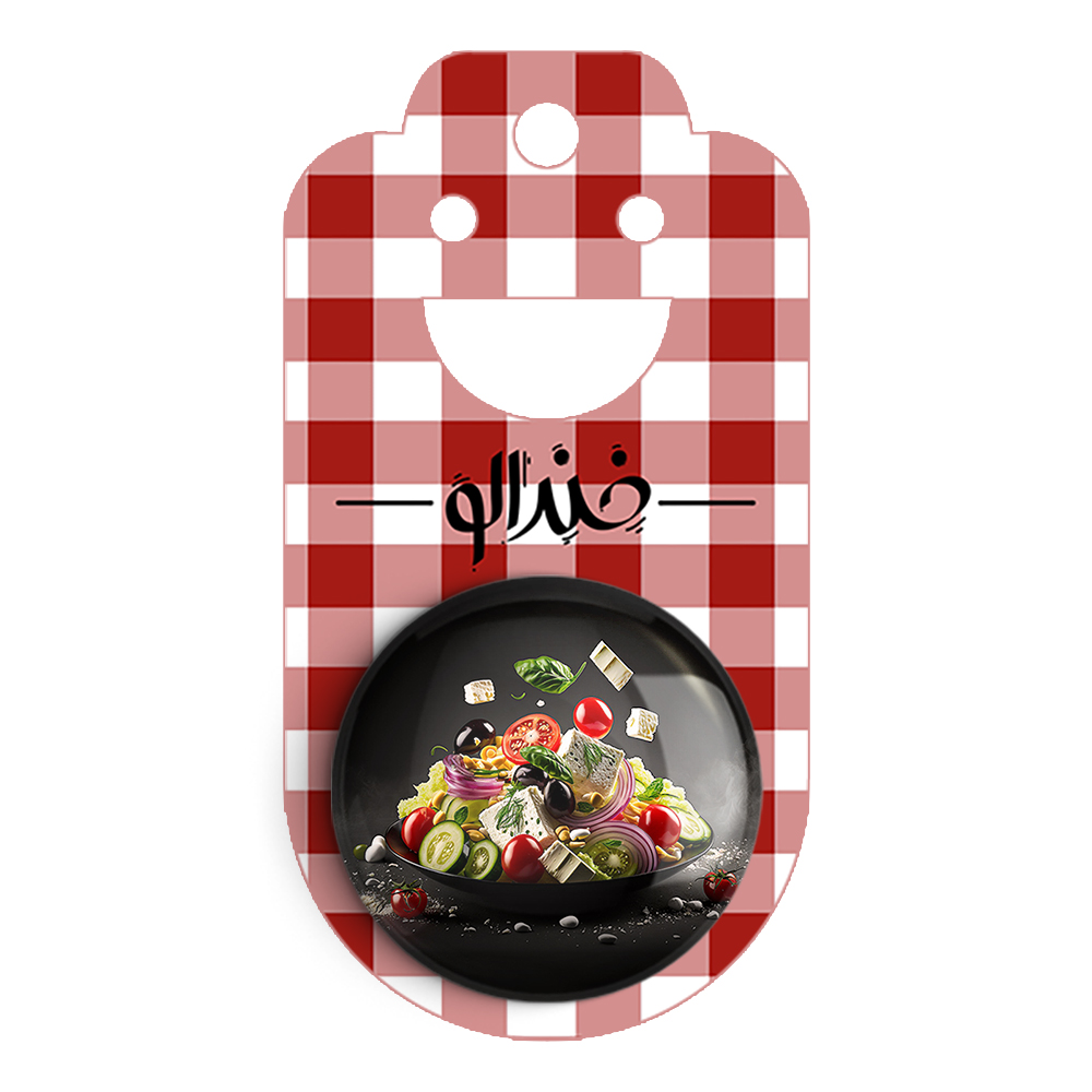 مگنت سالاد  خندالو با روکش سلفون مات مخملی ضدخش و قطعه پشتی فلزی تولید شده است که آهنربای اتمی بکار برده شده در محصول، بصورت مخفی تعبیه شده ودیده نمی شود. ضمن اینکه گیرایی بسیار بالایی داشته و به هیچ عنوان از روی یخچال نمی افتد.
