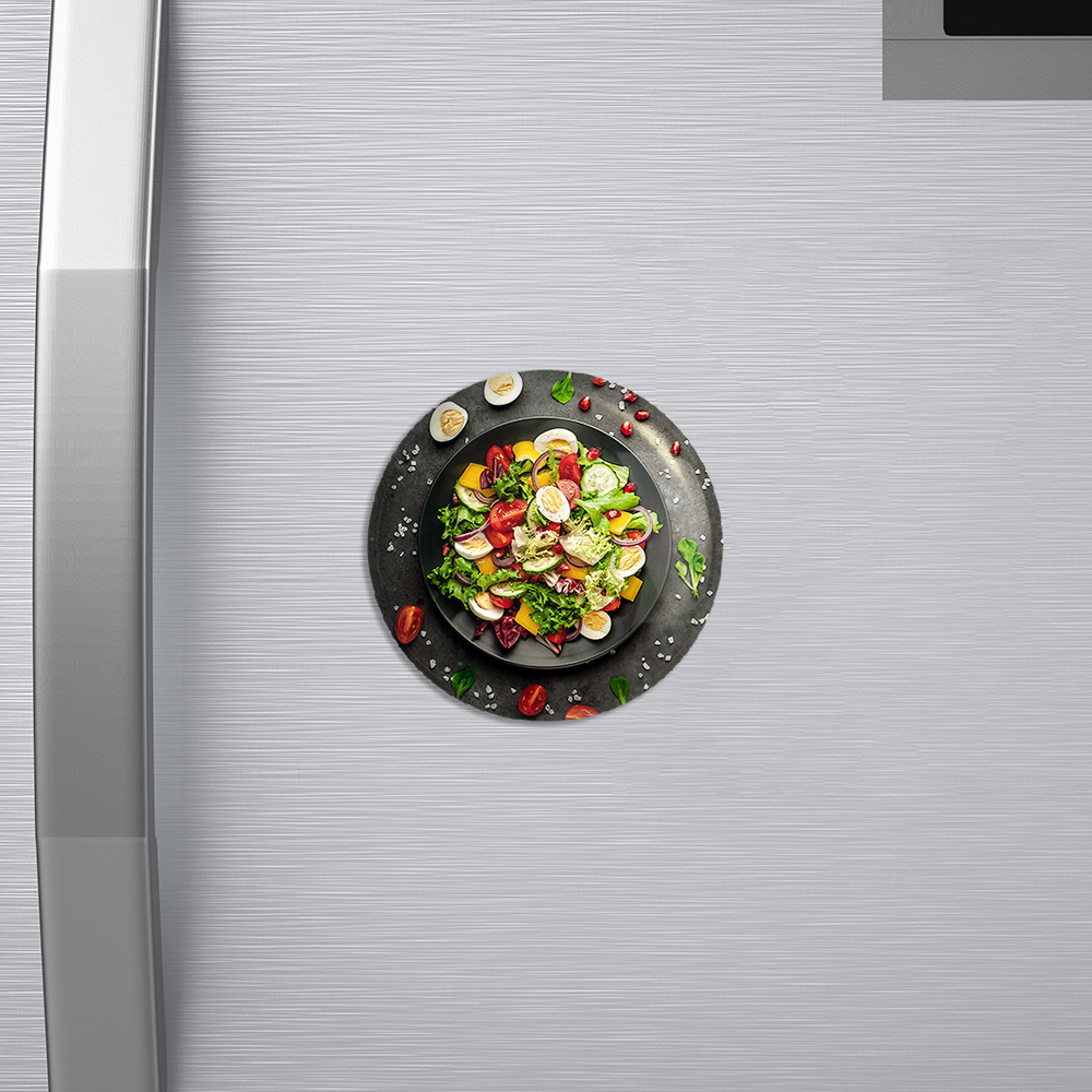 مگنت سالاد خندالو با روکش سلفون مات مخملی ضدخش و قطعه پشتی فلزی تولید شده است که آهنربای اتمی بکار برده شده در محصول، بصورت مخفی تعبیه شده ودیده نمی شود. ضمن اینکه گیرایی بسیار بالایی داشته و به هیچ عنوان از روی یخچال نمی افتد. نکته مهم این است که به دلیل مخفی بودن آهنربا، هیچگونه خط و خش و زدگی بر روی یخچال ایجاد نخواهد شد. چاپ مگنت یخچال سالاد نیز با دستگاه های استاندارد و با بهترین سطح کیفیت صورت گرفته و طرح با شفافیتی مثال زدنی و با سلفون چسبی تولید شده است که باعث شده محصول نهایی بدون شکست نور دیده شود. همچنین بسته بندی جذاب و مینیمال مگنت های یخچالی، آنها را مناسب هدیه کرده است. مگنت سالاد خندالو علاوه بر روی یخچال بر هر سطح فلزی دیگری مثل لولای در اتاق، کمد های آهنی و … نیز قابل نصب است.