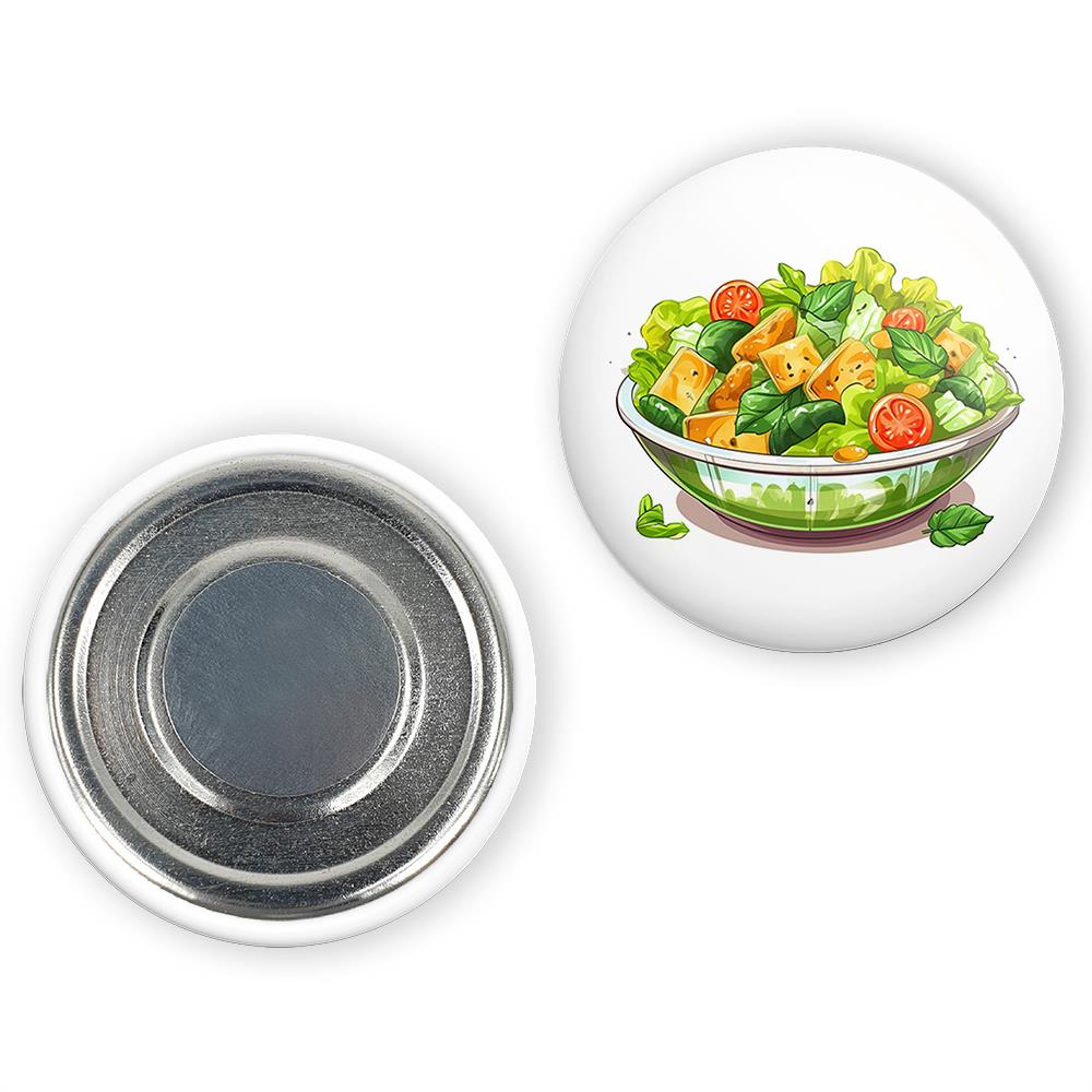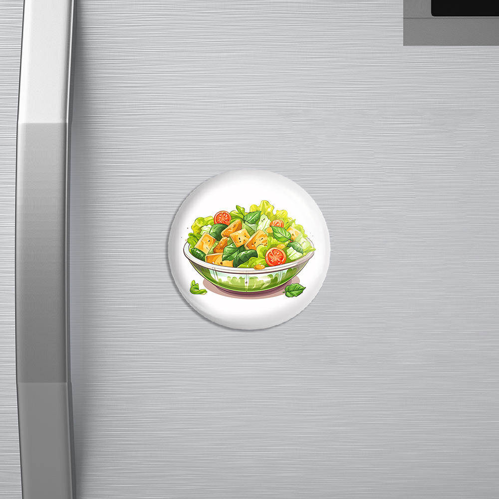 مگنت سالاد  خندالو با روکش سلفون مات مخملی ضدخش و قطعه پشتی فلزی تولید شده است که آهنربای اتمی بکار برده شده در محصول، بصورت مخفی تعبیه شده ودیده نمی شود. ضمن اینکه گیرایی بسیار بالایی داشته و به هیچ عنوان از روی یخچال نمی افتد.