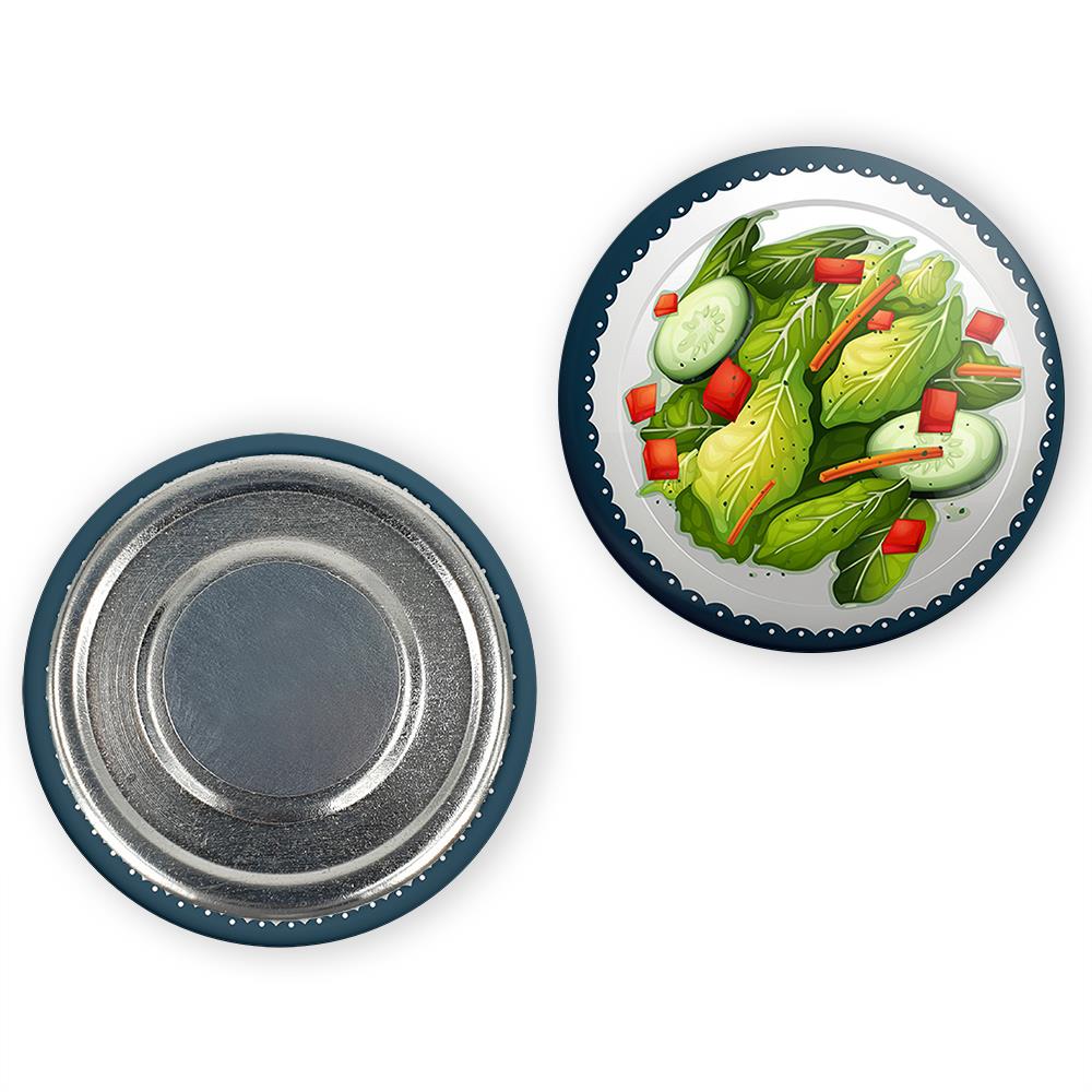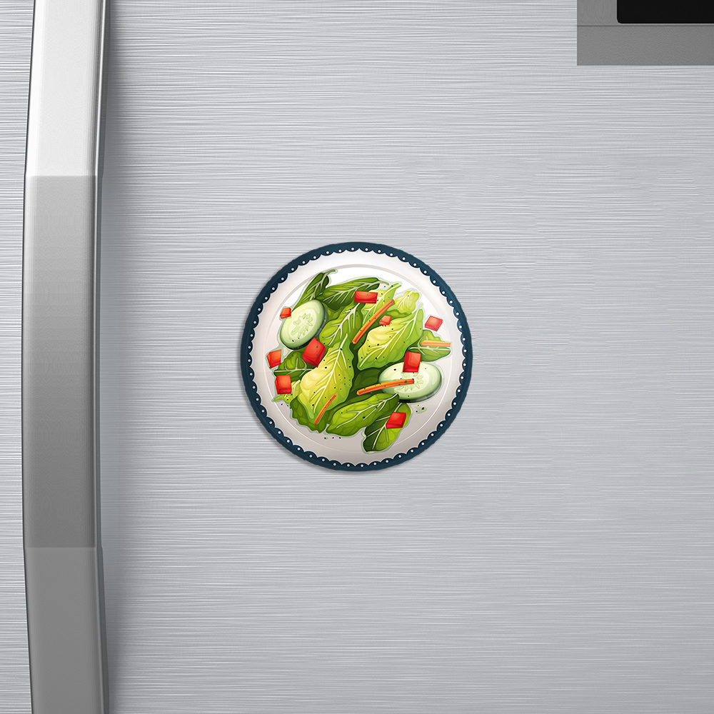 مگنت سالاد  خندالو با روکش سلفون مات مخملی ضدخش و قطعه پشتی فلزی تولید شده است که آهنربای اتمی بکار برده شده در محصول، بصورت مخفی تعبیه شده ودیده نمی شود. ضمن اینکه گیرایی بسیار بالایی داشته و به هیچ عنوان از روی یخچال نمی افتد.