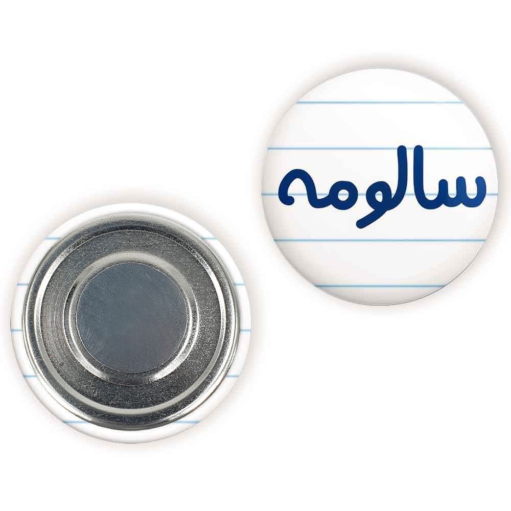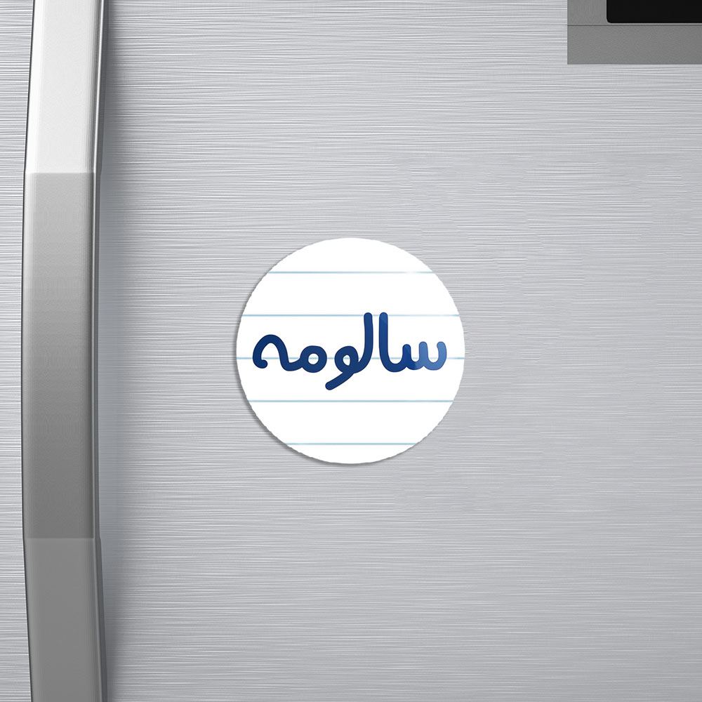 مگنت سالومه خندالو با روکش سلفون مات مخملی ضدخش و قطعه پشتی فلزی تولید شده است که آهنربای اتمی بکار برده شده در محصول، بصورت مخفی تعبیه شده ودیده نمی شود. ضمن اینکه گیرایی بسیار بالایی داشته و به هیچ عنوان از روی یخچال نمی افتد.
