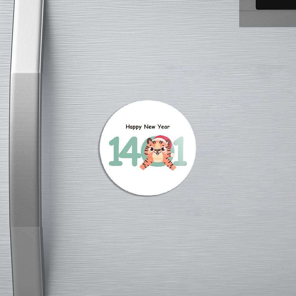 مگنت سال ببر خندالو با روکش سلفون مات مخملی ضدخش و قطعه پشتی فلزی تولید شده است که آهنربای اتمی بکار برده شده در محصول، بصورت مخفی تعبیه شده ودیده نمی شود. ضمن اینکه گیرایی بسیار بالایی داشته و به هیچ عنوان از روی یخچال نمی افتد.