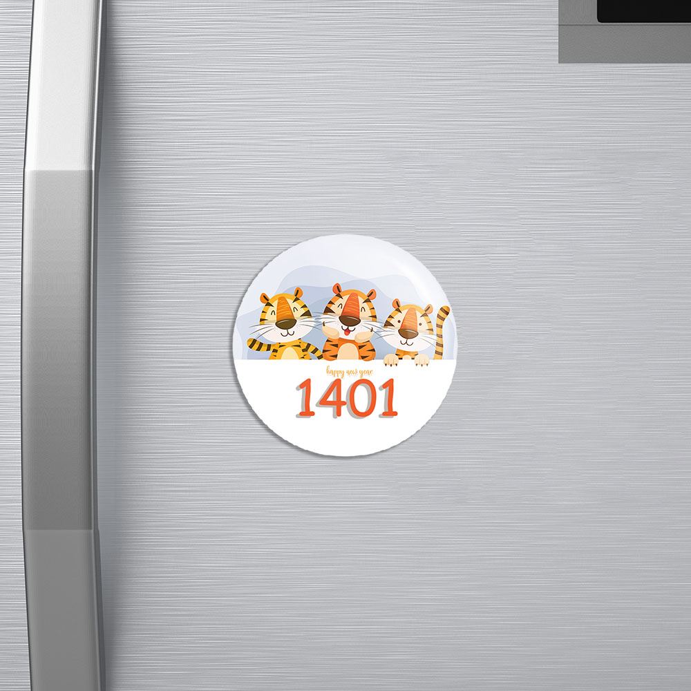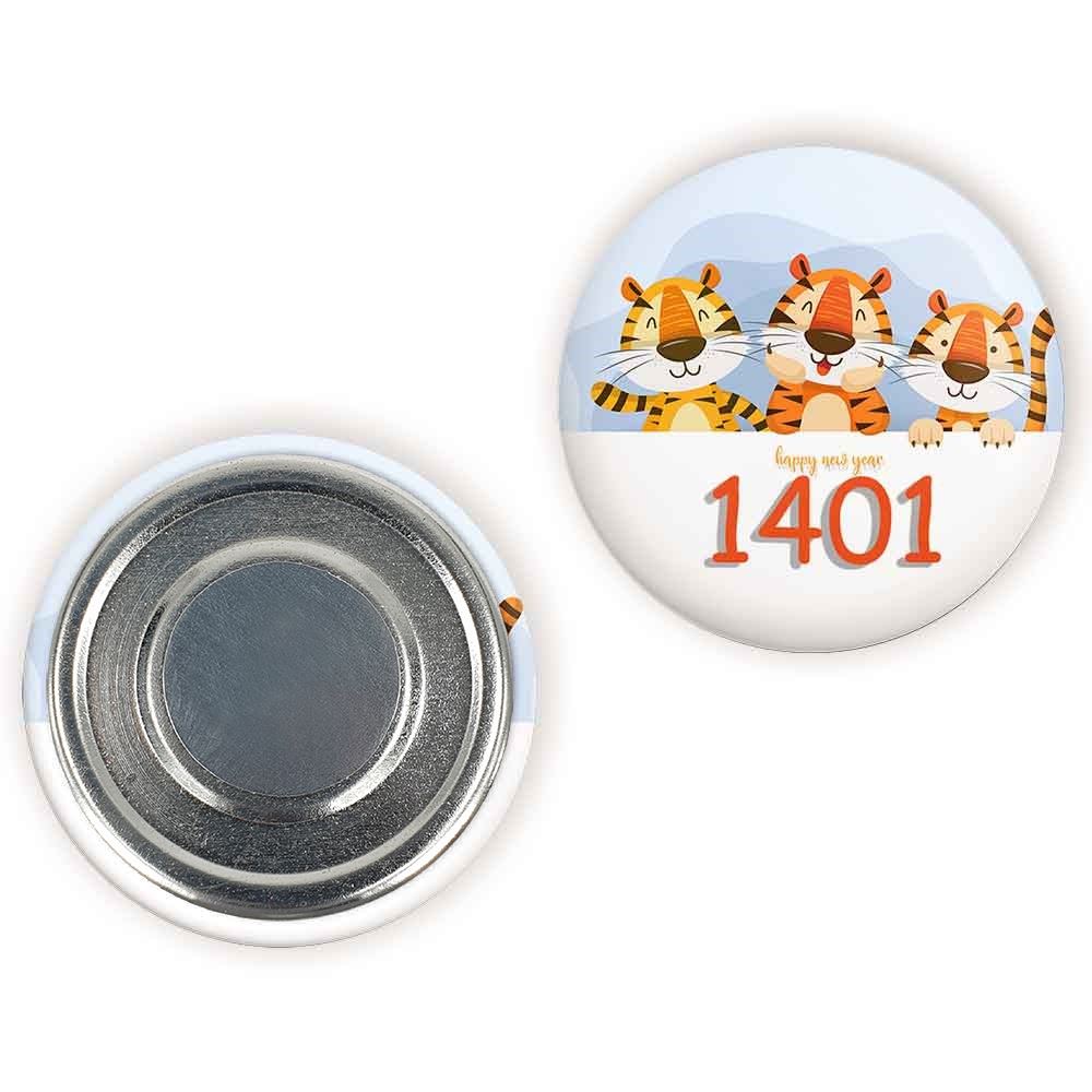 مگنت سال ببر خندالو با روکش سلفون مات مخملی ضدخش و قطعه پشتی فلزی تولید شده است که آهنربای اتمی بکار برده شده در محصول، بصورت مخفی تعبیه شده ودیده نمی شود. ضمن اینکه گیرایی بسیار بالایی داشته و به هیچ عنوان از روی یخچال نمی افتد.