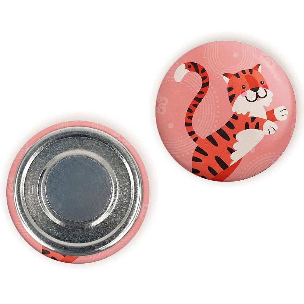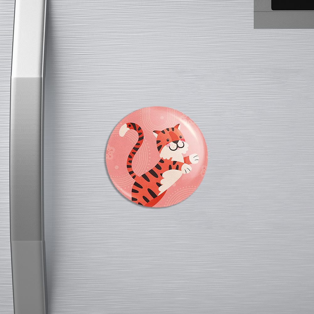 مگنت سال ببر خندالو با روکش سلفون مات مخملی ضدخش و قطعه پشتی فلزی تولید شده است که آهنربای اتمی بکار برده شده در محصول، بصورت مخفی تعبیه شده ودیده نمی شود. ضمن اینکه گیرایی بسیار بالایی داشته و به هیچ عنوان از روی یخچال نمی افتد.
