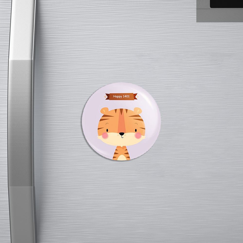 مگنت سال ببر خندالو با روکش سلفون مات مخملی ضدخش و قطعه پشتی فلزی تولید شده است که آهنربای اتمی بکار برده شده در محصول، بصورت مخفی تعبیه شده ودیده نمی شود. ضمن اینکه گیرایی بسیار بالایی داشته و به هیچ عنوان از روی یخچال نمی افتد.