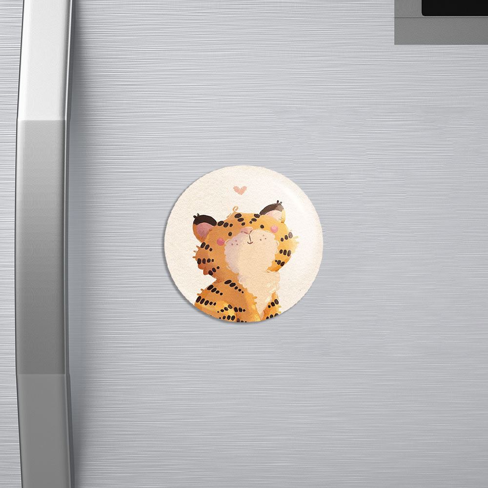 مگنت سال ببر خندالو با روکش سلفون مات مخملی ضدخش و قطعه پشتی فلزی تولید شده است که آهنربای اتمی بکار برده شده در محصول، بصورت مخفی تعبیه شده ودیده نمی شود. ضمن اینکه گیرایی بسیار بالایی داشته و به هیچ عنوان از روی یخچال نمی افتد.