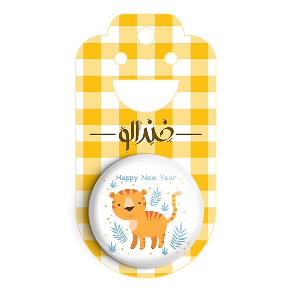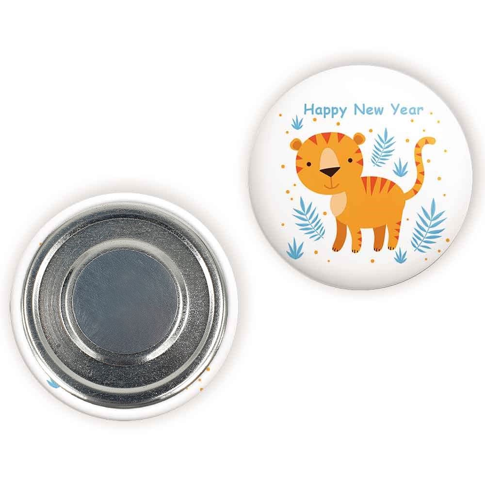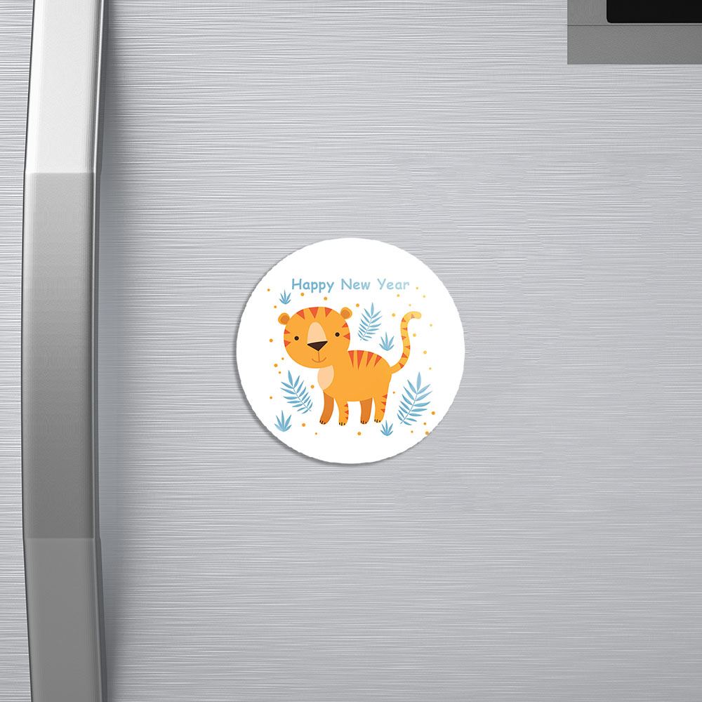 مگنت سال ببر خندالو با روکش سلفون مات مخملی ضدخش و قطعه پشتی فلزی تولید شده است که آهنربای اتمی بکار برده شده در محصول، بصورت مخفی تعبیه شده ودیده نمی شود. ضمن اینکه گیرایی بسیار بالایی داشته و به هیچ عنوان از روی یخچال نمی افتد.