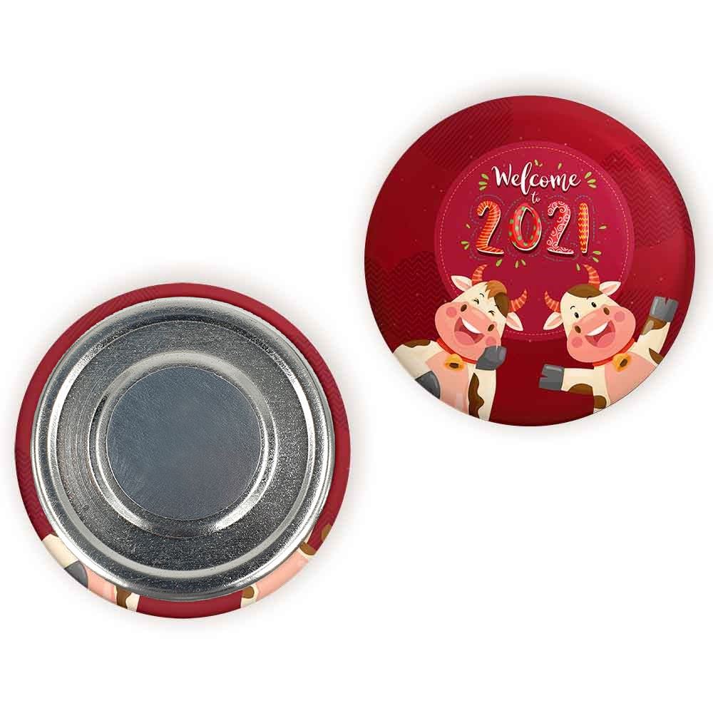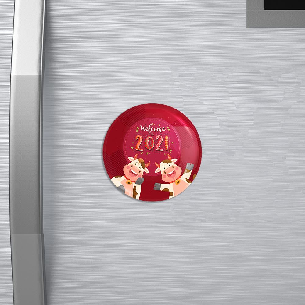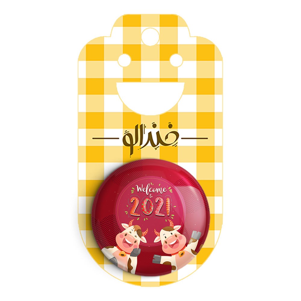 مگنت سال گاو خندالو با روکش سلفون مات مخملی ضدخش و قطعه پشتی فلزی تولید شده است که آهنربای اتمی بکار برده شده در محصول، بصورت مخفی تعبیه شده ودیده نمی شود. ضمن اینکه گیرایی بسیار بالایی داشته و به هیچ عنوان از روی یخچال نمی افتد.