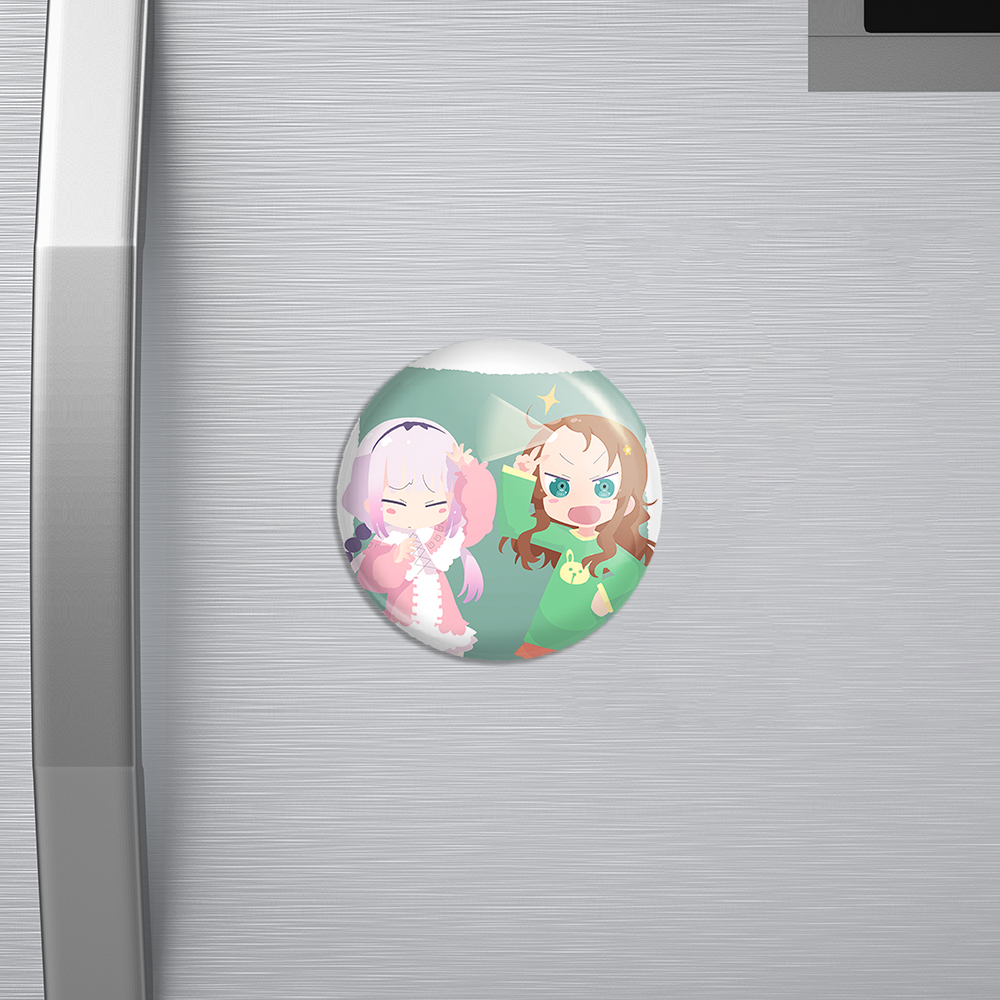 مگنت سایکاوا و کانا انیمه اژدهای خدمتکار کوبایاشی خندالو با روکش سلفون مات مخملی ضدخش و قطعه پشتی فلزی تولید شده است که آهنربای اتمی بکار برده شده در محصول، بصورت مخفی تعبیه شده ودیده نمی شود. ضمن اینکه گیرایی بسیار بالایی داشته و به هیچ عنوان از روی یخچال نمی افتد.