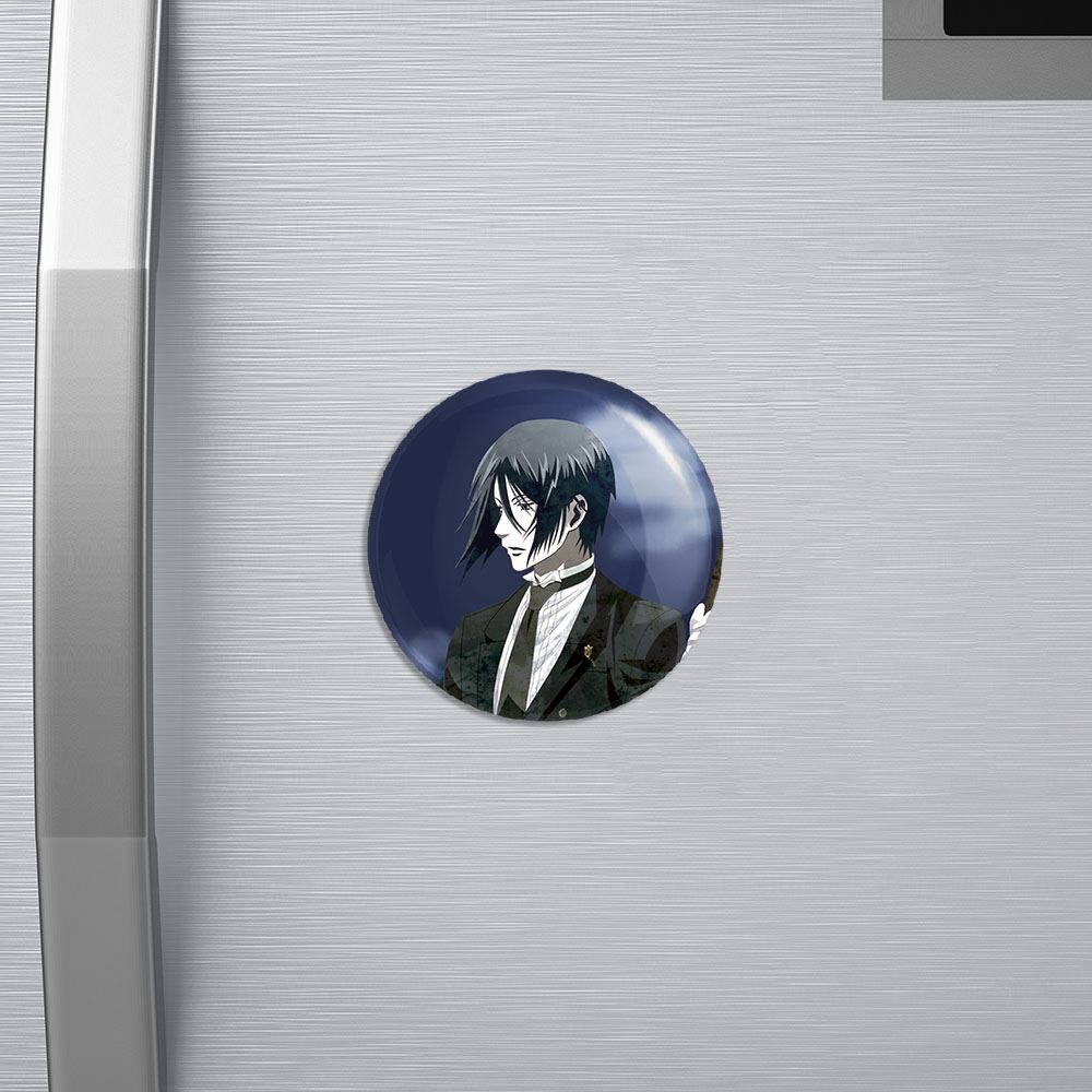 مگنت سباستین انیمه خادم سیاه Black Butler خندالو با روکش سلفون مات مخملی ضدخش و قطعه پشتی فلزی تولید شده است که آهنربای اتمی بکار برده شده در محصول، بصورت مخفی تعبیه شده ودیده نمی شود. ضمن اینکه گیرایی بسیار بالایی داشته و به هیچ عنوان از روی یخچال نمی افتد.