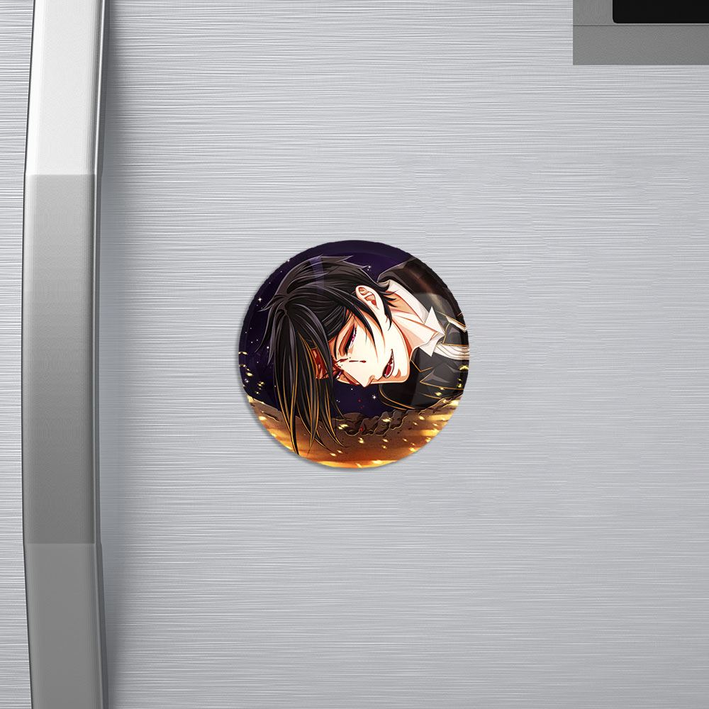 مگنت سباستین انیمه خادم سیاه Black Butler خندالو با روکش سلفون مات مخملی ضدخش و قطعه پشتی فلزی تولید شده است که آهنربای اتمی بکار برده شده در محصول، بصورت مخفی تعبیه شده ودیده نمی شود. ضمن اینکه گیرایی بسیار بالایی داشته و به هیچ عنوان از روی یخچال نمی افتد.