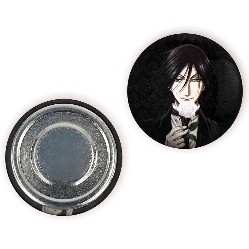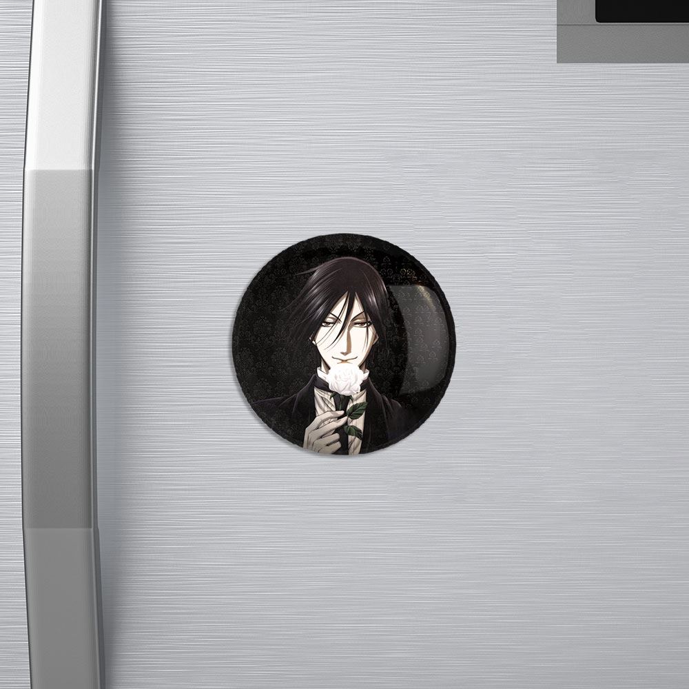مگنت سباستین انیمه خادم سیاه Black Butler خندالو با روکش سلفون مات مخملی ضدخش و قطعه پشتی فلزی تولید شده است که آهنربای اتمی بکار برده شده در محصول، بصورت مخفی تعبیه شده ودیده نمی شود. ضمن اینکه گیرایی بسیار بالایی داشته و به هیچ عنوان از روی یخچال نمی افتد.