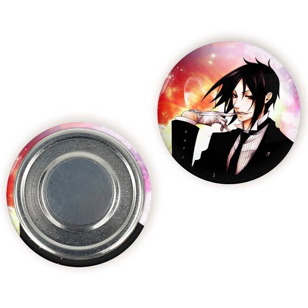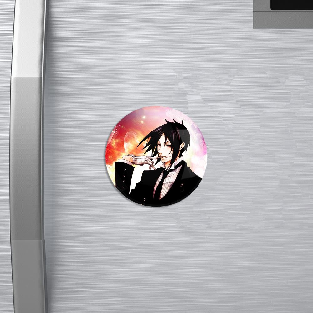 مگنت سباستین انیمه خادم سیاه Black Butler خندالو با روکش سلفون مات مخملی ضدخش و قطعه پشتی فلزی تولید شده است که آهنربای اتمی بکار برده شده در محصول، بصورت مخفی تعبیه شده ودیده نمی شود. ضمن اینکه گیرایی بسیار بالایی داشته و به هیچ عنوان از روی یخچال نمی افتد.