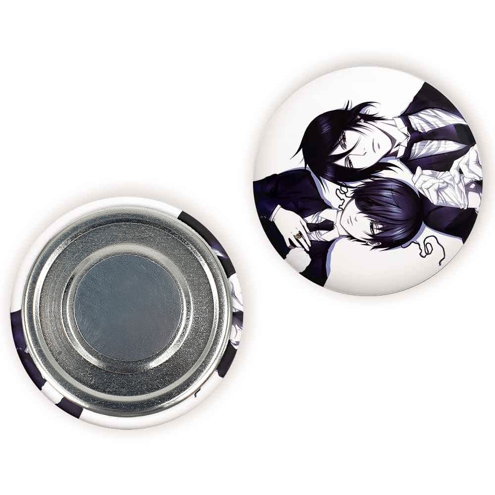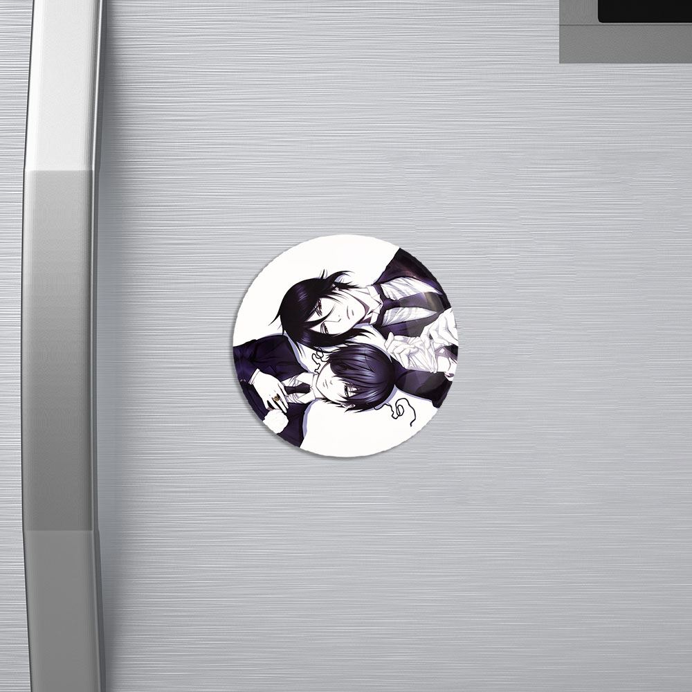 مگنت سباستین و شیل انیمه خادم سیاه Black Butler خندالو با روکش سلفون مات مخملی ضدخش و قطعه پشتی فلزی تولید شده است که آهنربای اتمی بکار برده شده در محصول، بصورت مخفی تعبیه شده ودیده نمی شود. ضمن اینکه گیرایی بسیار بالایی داشته و به هیچ عنوان از روی یخچال نمی افتد.