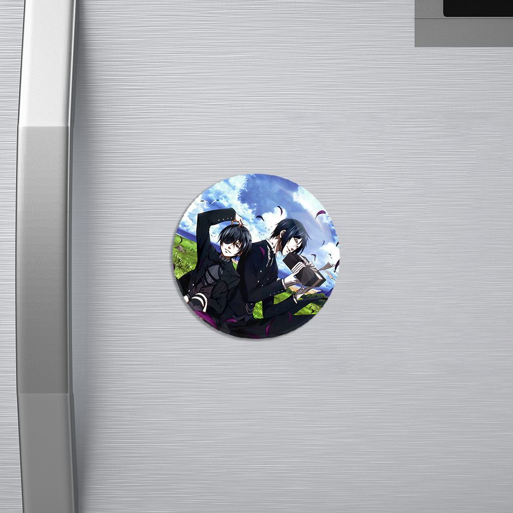 مگنت سباستین و شیل انیمه خادم سیاه Black Butler خندالو با روکش سلفون مات مخملی ضدخش و قطعه پشتی فلزی تولید شده است که آهنربای اتمی بکار برده شده در محصول، بصورت مخفی تعبیه شده ودیده نمی شود. ضمن اینکه گیرایی بسیار بالایی داشته و به هیچ عنوان از روی یخچال نمی افتد.
