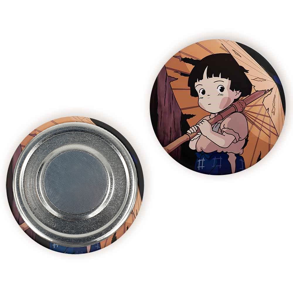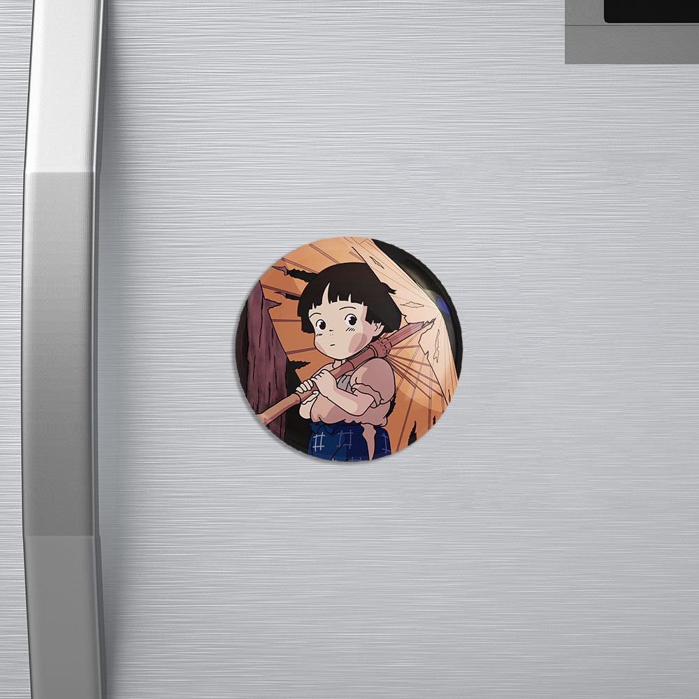 مگنت ستسوکو انیمیشن گورستان کرم های شب تاب خندالو با روکش سلفون مات مخملی ضدخش و قطعه پشتی فلزی تولید شده است که آهنربای اتمی بکار برده شده در محصول، بصورت مخفی تعبیه شده ودیده نمی شود. ضمن اینکه گیرایی بسیار بالایی داشته و به هیچ عنوان از روی یخچال نمی افتد.