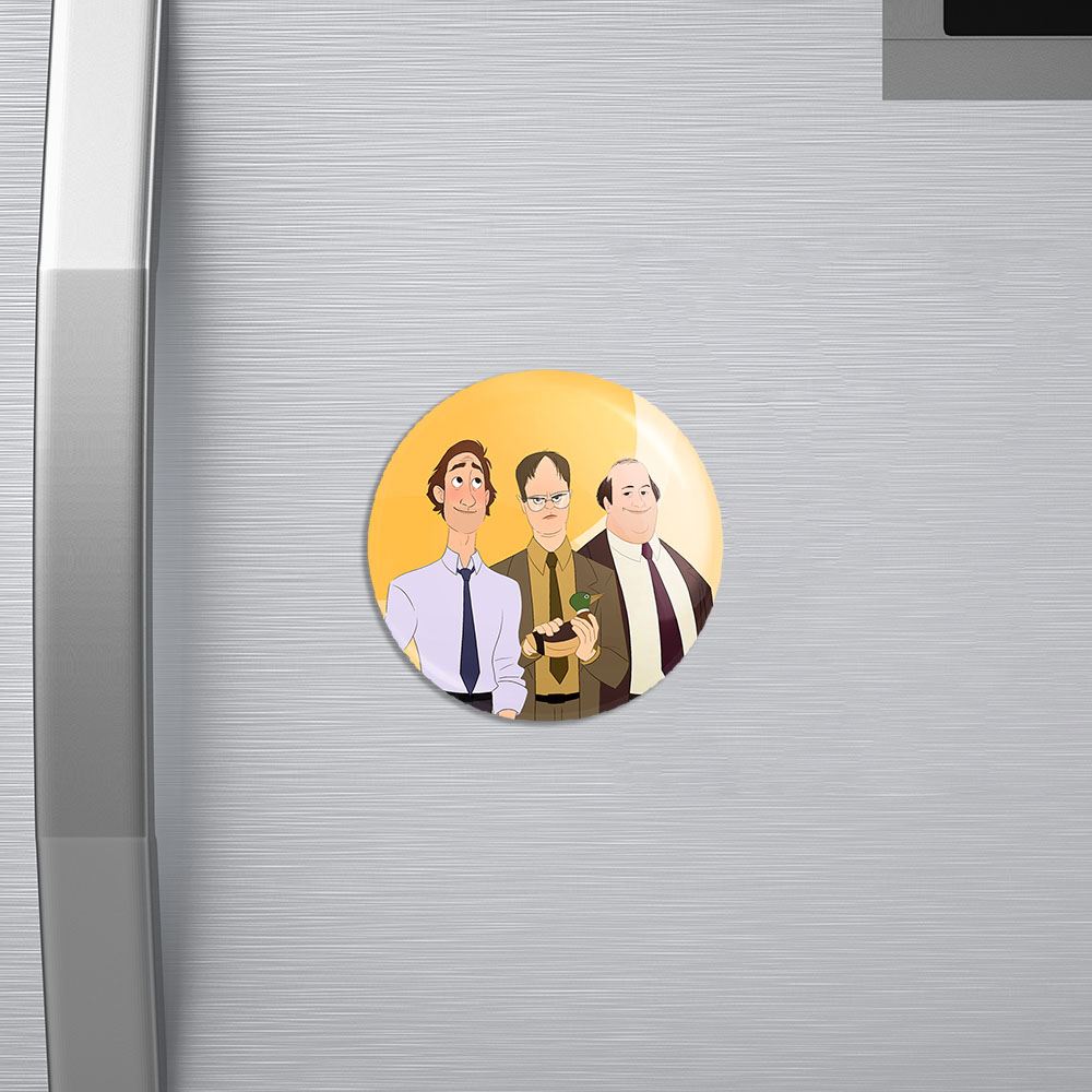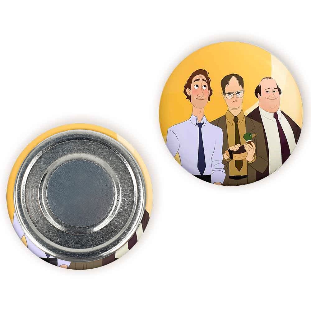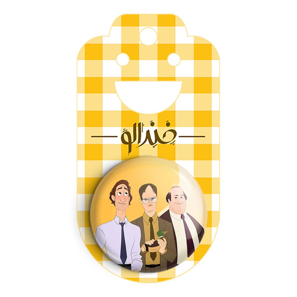 مگنت سریال آفیس The Office خندالو با روکش سلفون مات مخملی ضدخش و قطعه پشتی فلزی تولید شده است که آهنربای اتمی بکار برده شده در محصول، بصورت مخفی تعبیه شده ودیده نمی شود. ضمن اینکه گیرایی بسیار بالایی داشته و به هیچ عنوان از روی یخچال نمی افتد.