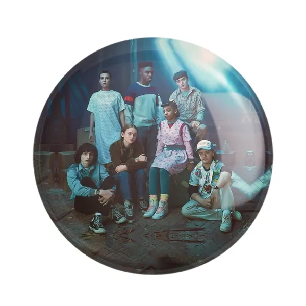 مگنت سریال استرنجر تینگز Stranger Things خندالو با روکش سلفون مات مخملی ضدخش و قطعه پشتی فلزی تولید شده است که آهنربای اتمی بکار برده شده در محصول، بصورت مخفی تعبیه شده ودیده نمی شود. ضمن اینکه گیرایی بسیار بالایی داشته و به هیچ عنوان از روی یخچال نمی افتد.