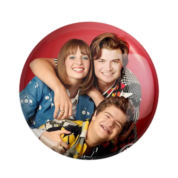مگنت سریال استرنجر تینگز Stranger Things خندالو با روکش سلفون مات مخملی ضدخش و قطعه پشتی فلزی تولید شده است که آهنربای اتمی بکار برده شده در محصول، بصورت مخفی تعبیه شده ودیده نمی شود. ضمن اینکه گیرایی بسیار بالایی داشته و به هیچ عنوان از روی یخچال نمی افتد.