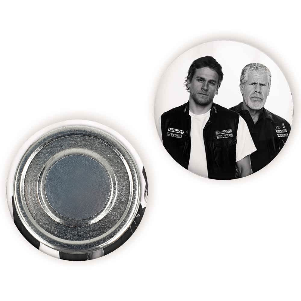 مگنت سریال فرزندان آشوب خندالو با روکش سلفون مات مخملی ضدخش و قطعه پشتی فلزی تولید شده است که آهنربای اتمی بکار برده شده در محصول، بصورت مخفی تعبیه شده ودیده نمی شود. ضمن اینکه گیرایی بسیار بالایی داشته و به هیچ عنوان از روی یخچال نمی افتد.