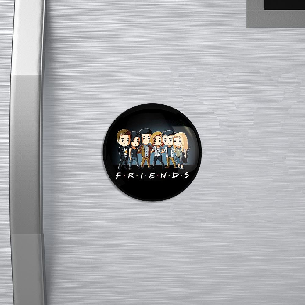 مگنت سریال فرندز Friends خندالو با روکش سلفون مات مخملی ضدخش و قطعه پشتی فلزی تولید شده است که آهنربای اتمی بکار برده شده در محصول، بصورت مخفی تعبیه شده ودیده نمی شود. ضمن اینکه گیرایی بسیار بالایی داشته و به هیچ عنوان از روی یخچال نمی افتد.