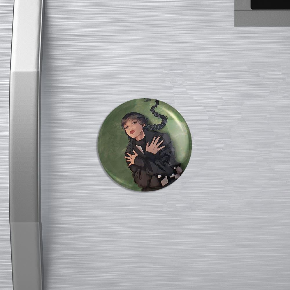 مگنت سریال ونزدی Wednesday خندالو با روکش سلفون مات مخملی ضدخش و قطعه پشتی فلزی تولید شده است که آهنربای اتمی بکار برده شده در محصول، بصورت مخفی تعبیه شده ودیده نمی شود. ضمن اینکه گیرایی بسیار بالایی داشته و به هیچ عنوان از روی یخچال نمی افتد.