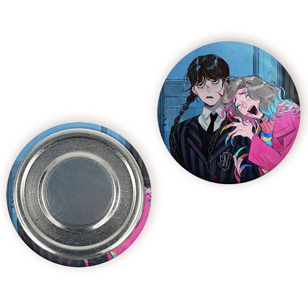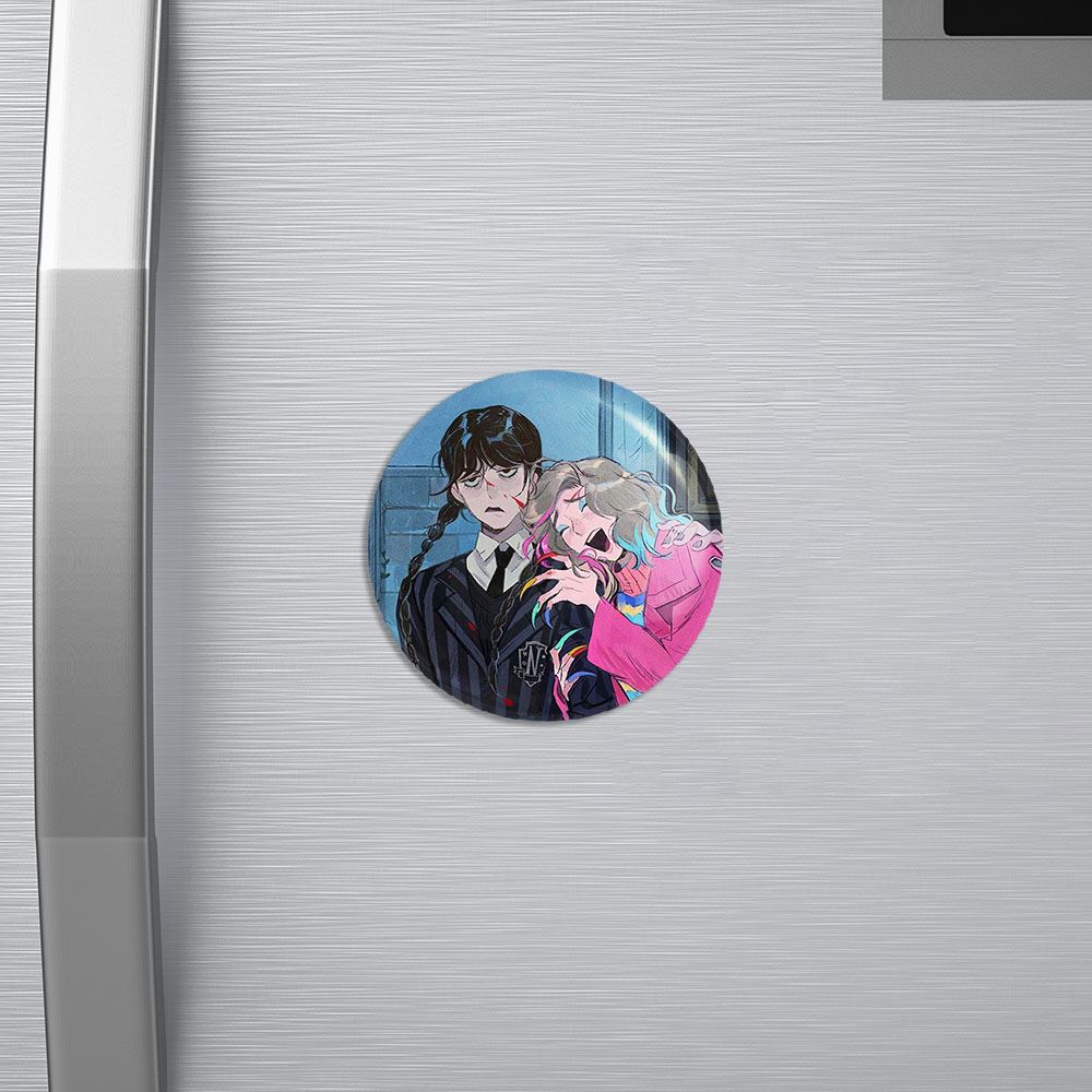 مگنت سریال ونزدی Wednesday خندالو با روکش سلفون مات مخملی ضدخش و قطعه پشتی فلزی تولید شده است که آهنربای اتمی بکار برده شده در محصول، بصورت مخفی تعبیه شده ودیده نمی شود. ضمن اینکه گیرایی بسیار بالایی داشته و به هیچ عنوان از روی یخچال نمی افتد.