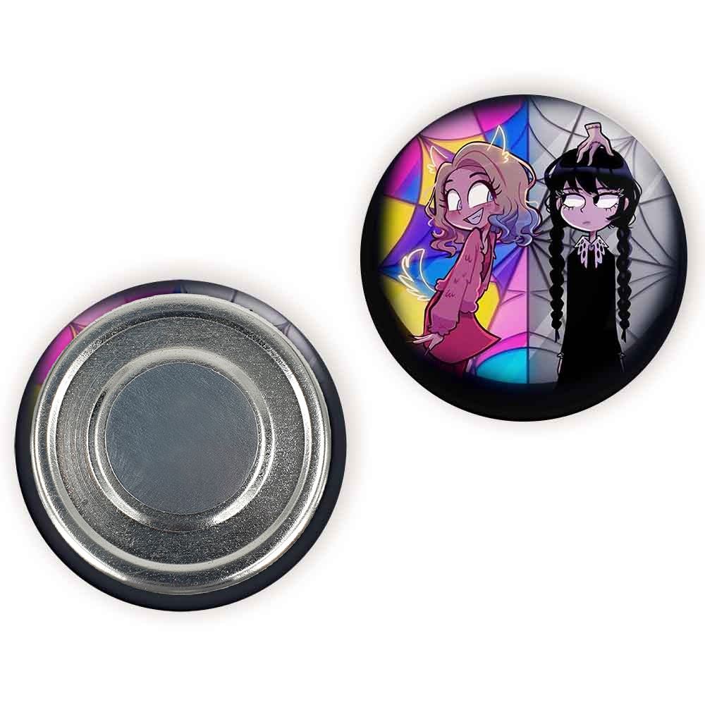 مگنت سریال ونزدی Wednesday خندالو با روکش سلفون مات مخملی ضدخش و قطعه پشتی فلزی تولید شده است که آهنربای اتمی بکار برده شده در محصول، بصورت مخفی تعبیه شده ودیده نمی شود. ضمن اینکه گیرایی بسیار بالایی داشته و به هیچ عنوان از روی یخچال نمی افتد.