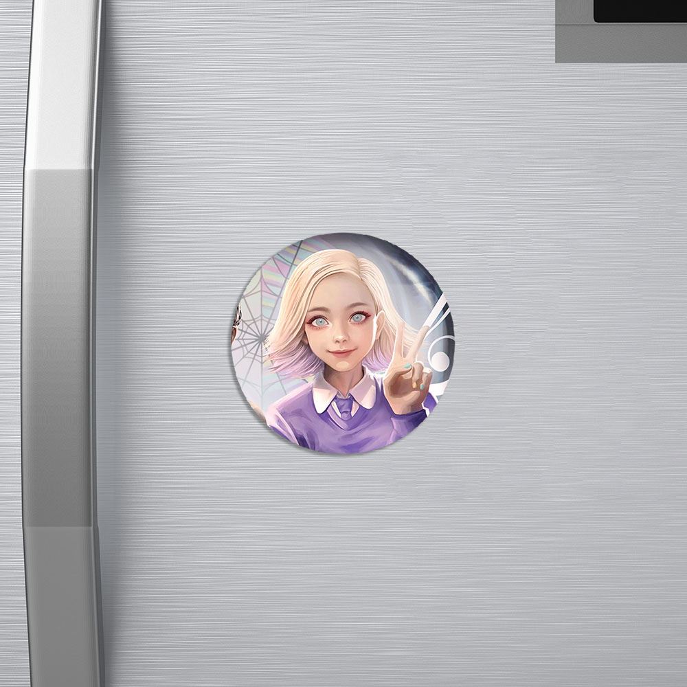 مگنت سریال ونزدی Wednesday خندالو با روکش سلفون مات مخملی ضدخش و قطعه پشتی فلزی تولید شده است که آهنربای اتمی بکار برده شده در محصول، بصورت مخفی تعبیه شده ودیده نمی شود. ضمن اینکه گیرایی بسیار بالایی داشته و به هیچ عنوان از روی یخچال نمی افتد.