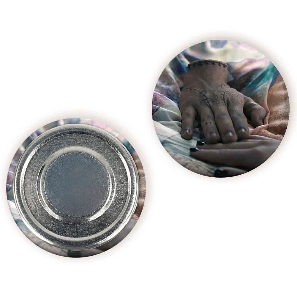 مگنت سریال ونزدی Wednesday خندالو با روکش سلفون مات مخملی ضدخش و قطعه پشتی فلزی تولید شده است که آهنربای اتمی بکار برده شده در محصول، بصورت مخفی تعبیه شده ودیده نمی شود. ضمن اینکه گیرایی بسیار بالایی داشته و به هیچ عنوان از روی یخچال نمی افتد.