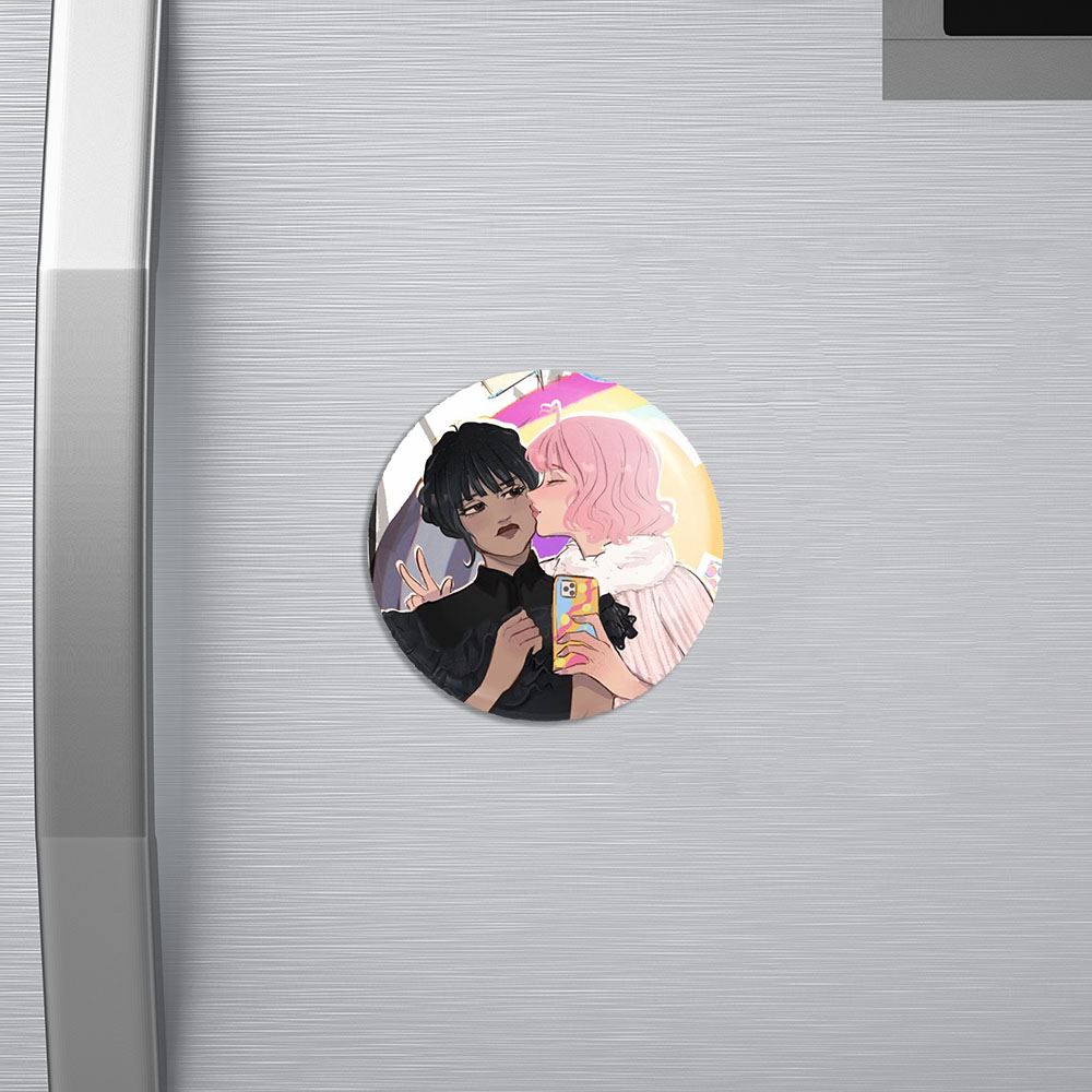 مگنت سریال ونزدی Wednesday خندالو با روکش سلفون مات مخملی ضدخش و قطعه پشتی فلزی تولید شده است که آهنربای اتمی بکار برده شده در محصول، بصورت مخفی تعبیه شده ودیده نمی شود. ضمن اینکه گیرایی بسیار بالایی داشته و به هیچ عنوان از روی یخچال نمی افتد.