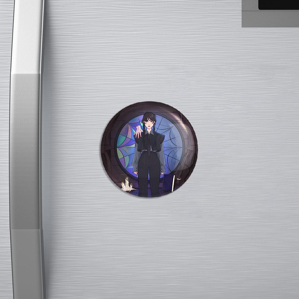 مگنت سریال ونزدی Wednesday خندالو با روکش سلفون مات مخملی ضدخش و قطعه پشتی فلزی تولید شده است که آهنربای اتمی بکار برده شده در محصول، بصورت مخفی تعبیه شده ودیده نمی شود. ضمن اینکه گیرایی بسیار بالایی داشته و به هیچ عنوان از روی یخچال نمی افتد.