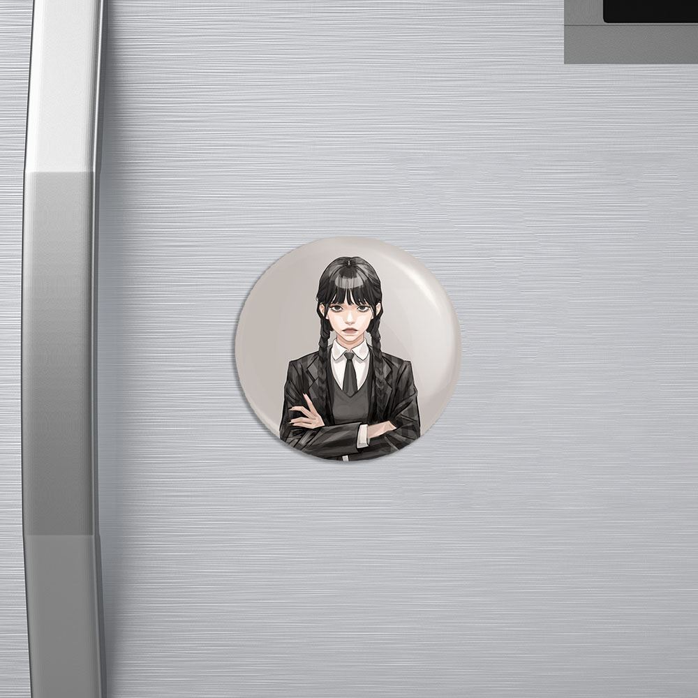 مگنت سریال ونزدی Wednesday خندالو با روکش سلفون مات مخملی ضدخش و قطعه پشتی فلزی تولید شده است که آهنربای اتمی بکار برده شده در محصول، بصورت مخفی تعبیه شده ودیده نمی شود. ضمن اینکه گیرایی بسیار بالایی داشته و به هیچ عنوان از روی یخچال نمی افتد.