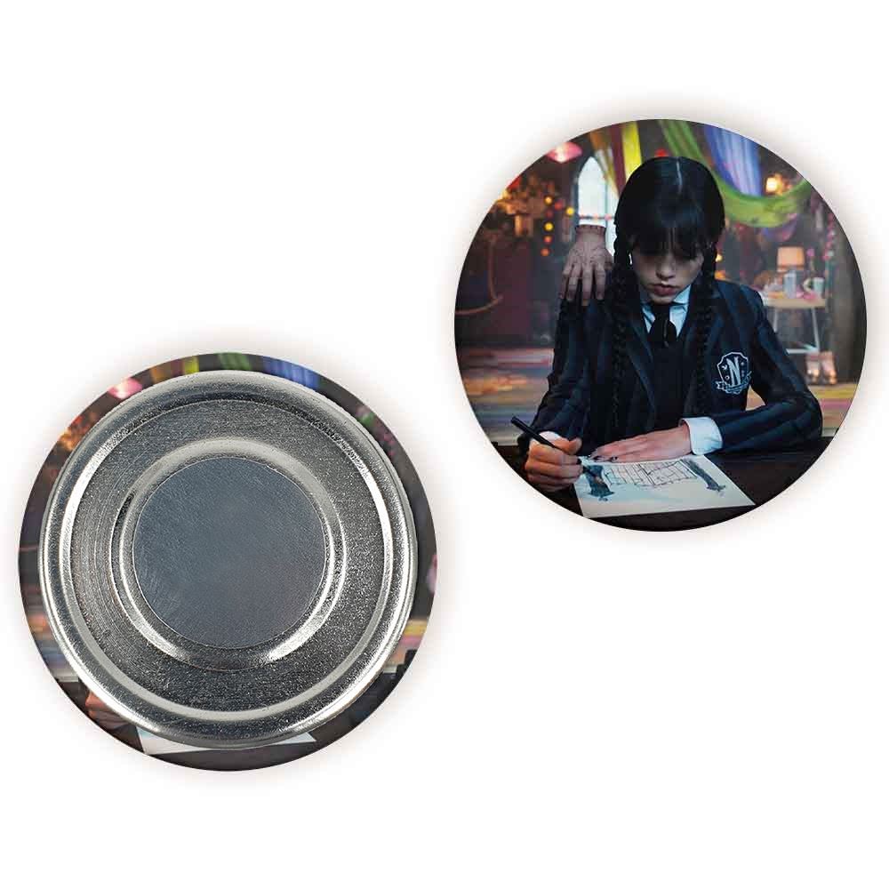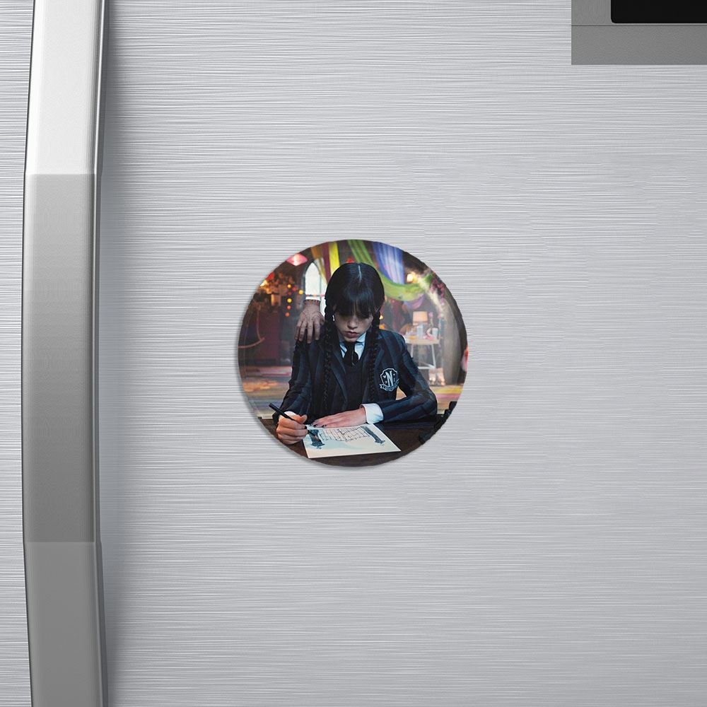 مگنت سریال ونزدی Wednesday خندالو با روکش سلفون مات مخملی ضدخش و قطعه پشتی فلزی تولید شده است که آهنربای اتمی بکار برده شده در محصول، بصورت مخفی تعبیه شده ودیده نمی شود. ضمن اینکه گیرایی بسیار بالایی داشته و به هیچ عنوان از روی یخچال نمی افتد.