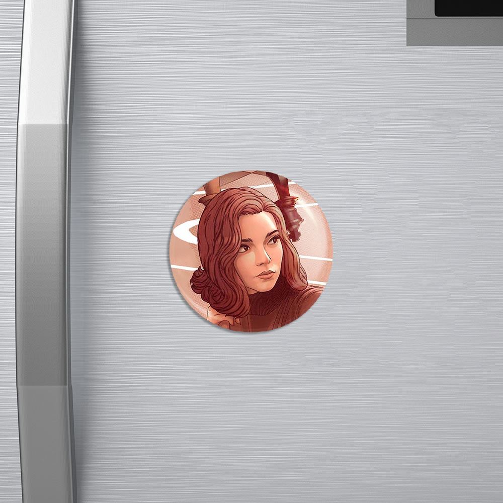 مگنت سریال گامبی وزیر خندالو با روکش سلفون مات مخملی ضدخش و قطعه پشتی فلزی تولید شده است که آهنربای اتمی بکار برده شده در محصول، بصورت مخفی تعبیه شده ودیده نمی شود. ضمن اینکه گیرایی بسیار بالایی داشته و به هیچ عنوان از روی یخچال نمی افتد.