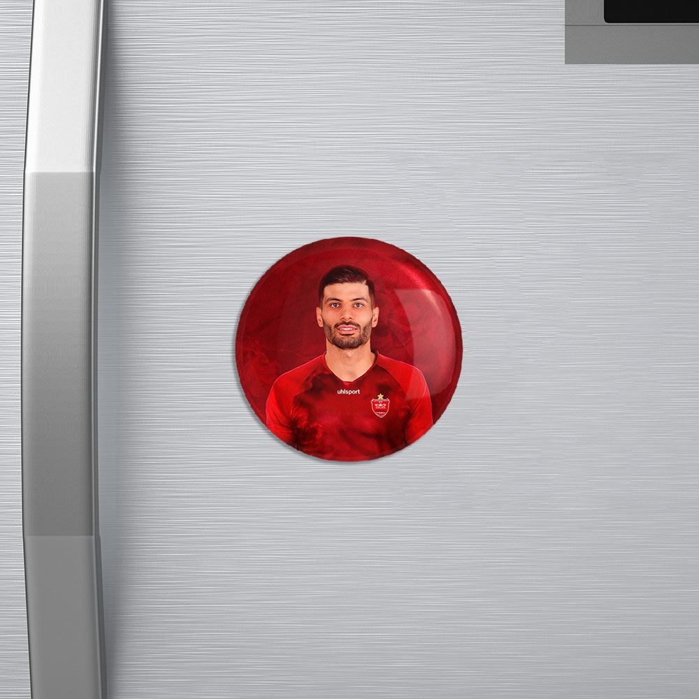 مگنت سعید آقایی پرسپولیس خندالو با روکش سلفون مات مخملی ضدخش و قطعه پشتی فلزی تولید شده است که آهنربای اتمی بکار برده شده در محصول، بصورت مخفی تعبیه شده ودیده نمی شود. ضمن اینکه گیرایی بسیار بالایی داشته و به هیچ عنوان از روی یخچال نمی افتد.