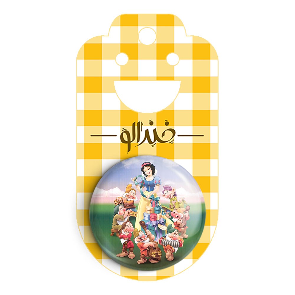 مگنت سفید برفی Snow White خندالو با روکش سلفون مات مخملی ضدخش و قطعه پشتی فلزی تولید شده است که آهنربای اتمی بکار برده شده در محصول، بصورت مخفی تعبیه شده ودیده نمی شود. ضمن اینکه گیرایی بسیار بالایی داشته و به هیچ عنوان از روی یخچال نمی افتد.