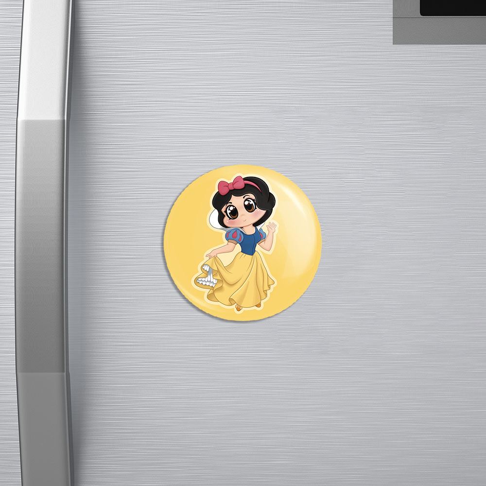 مگنت سفید برفی Snow White خندالو با روکش سلفون مات مخملی ضدخش و قطعه پشتی فلزی تولید شده است که آهنربای اتمی بکار برده شده در محصول، بصورت مخفی تعبیه شده ودیده نمی شود. ضمن اینکه گیرایی بسیار بالایی داشته و به هیچ عنوان از روی یخچال نمی افتد.