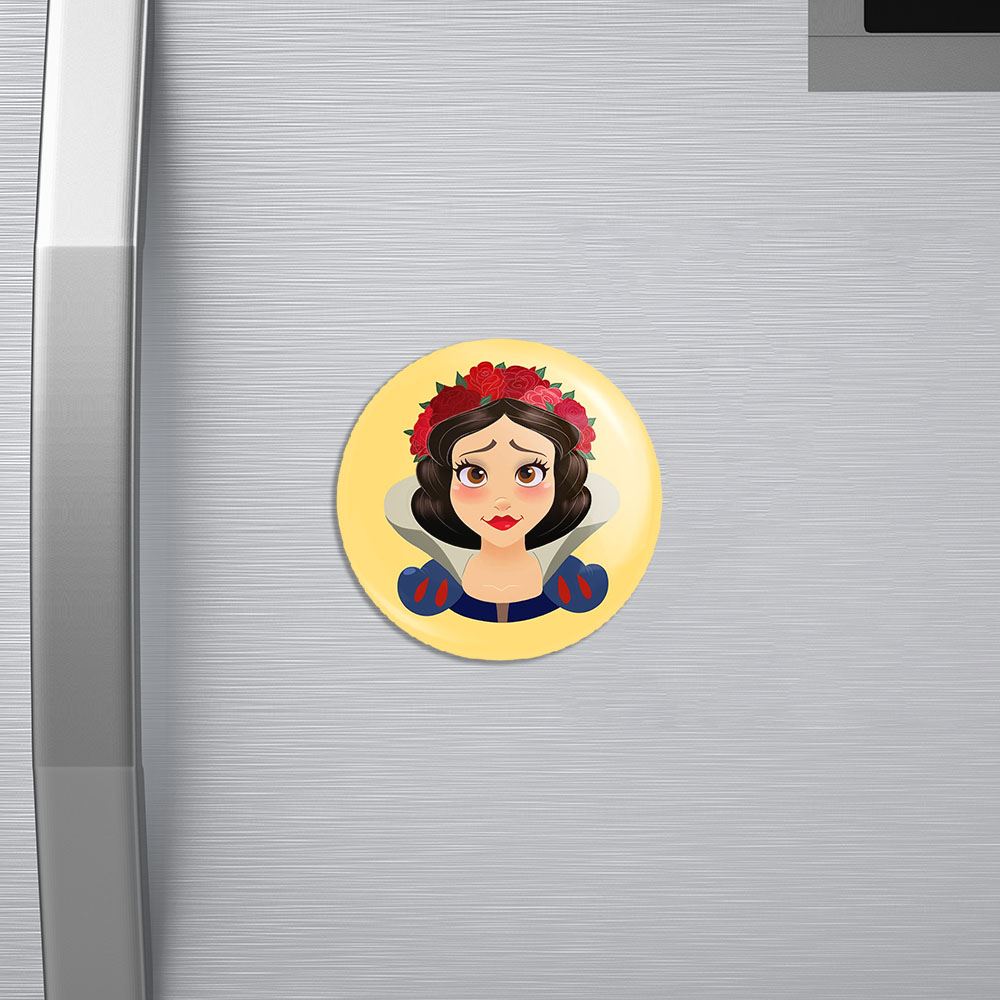 مگنت سفید برفی Snow White خندالو با روکش سلفون مات مخملی ضدخش و قطعه پشتی فلزی تولید شده است که آهنربای اتمی بکار برده شده در محصول، بصورت مخفی تعبیه شده ودیده نمی شود. ضمن اینکه گیرایی بسیار بالایی داشته و به هیچ عنوان از روی یخچال نمی افتد.